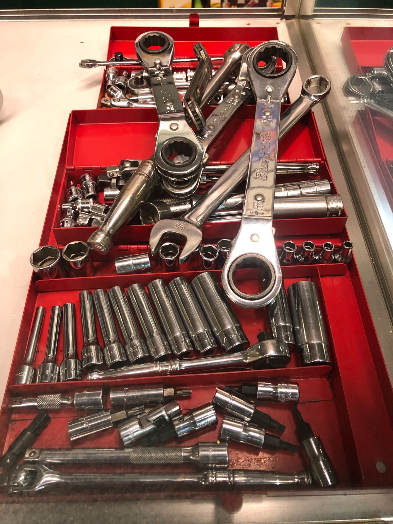 Approx. 75 pcs. of Snap-on & 4 pcs. Blue-point tools - sockets/ ratchets etc.