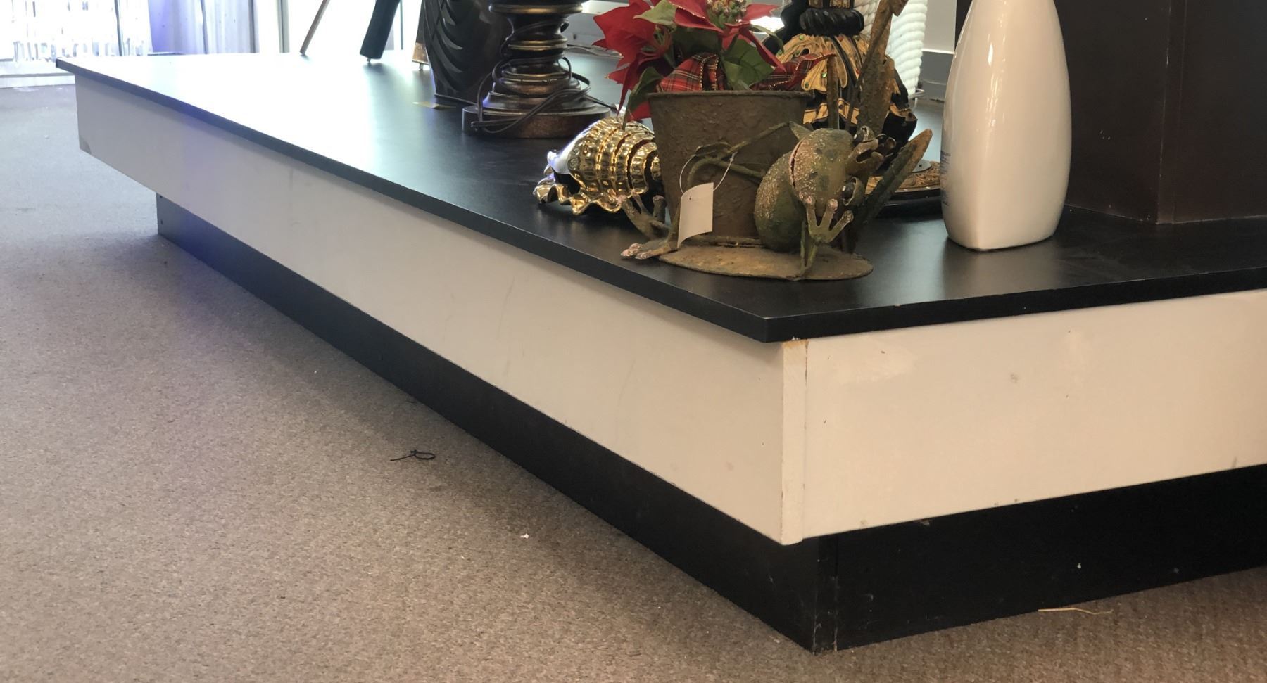 Approx 8ft wide display stage - approx. 8" x 3" x 1ft" (bidder is responsible for removal)