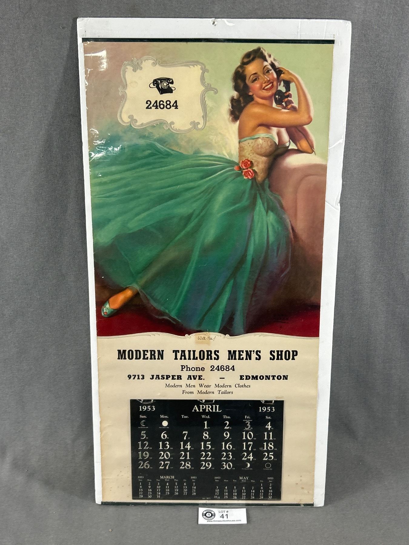 April 1953 "Modern Tailors Men's Shop" Edmonton Wall Calendar On Board In Wrap. Approx. 23" x 11"