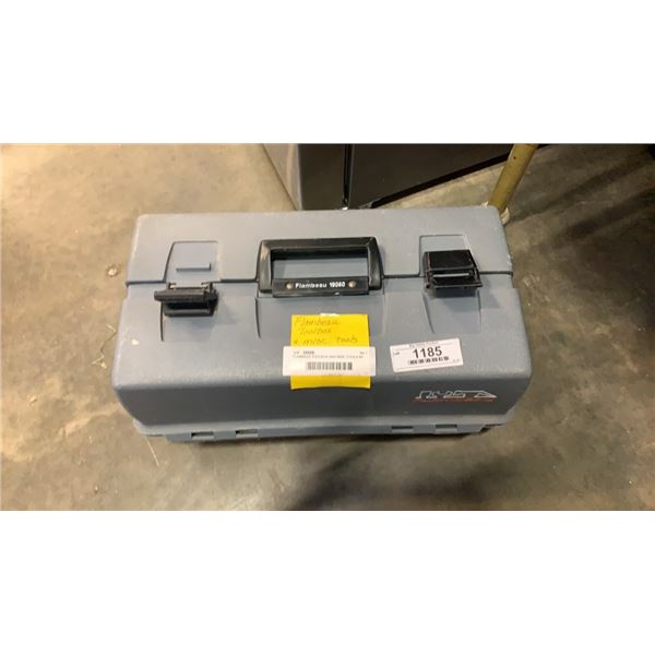 FLAMBEAU TOOLBOX AND MISC TOOLS W/ BLACK AND DECKER DRILL