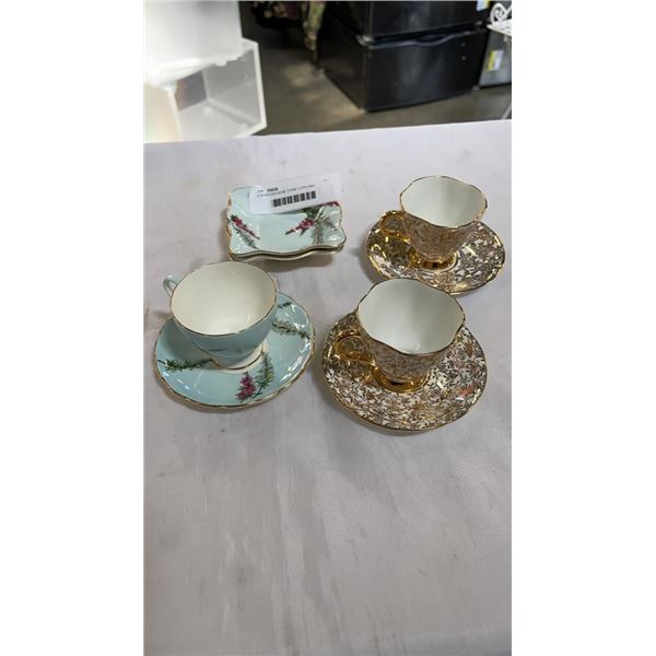 2 WINDSOR BONE CHINA CUPS AND SAUCERS AND 4 PIECES HIGHLAND HEATHER FOLEY CHINA