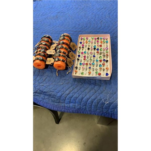 100 new rings and 14 new leather bracelets