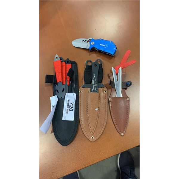 2 sets of new throwing knives and 2 folding knives