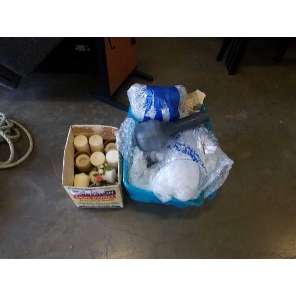 TOTE OF VASES AND BOX OF CANDLES