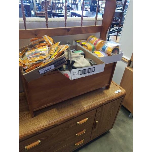 3 trays of knitting needles, thread and books