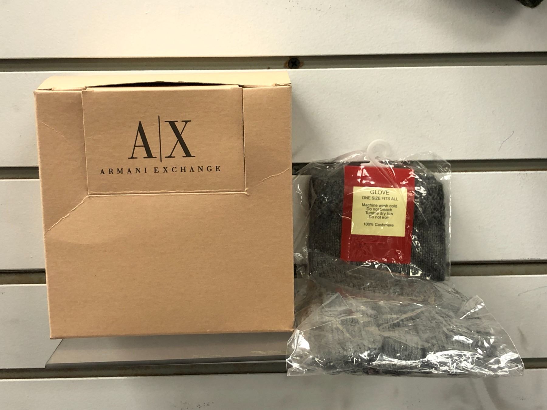 "Armani exchange" - leather gloves (brand new in box) & "Pearls & cashmere" - 100% Cashmere Glove