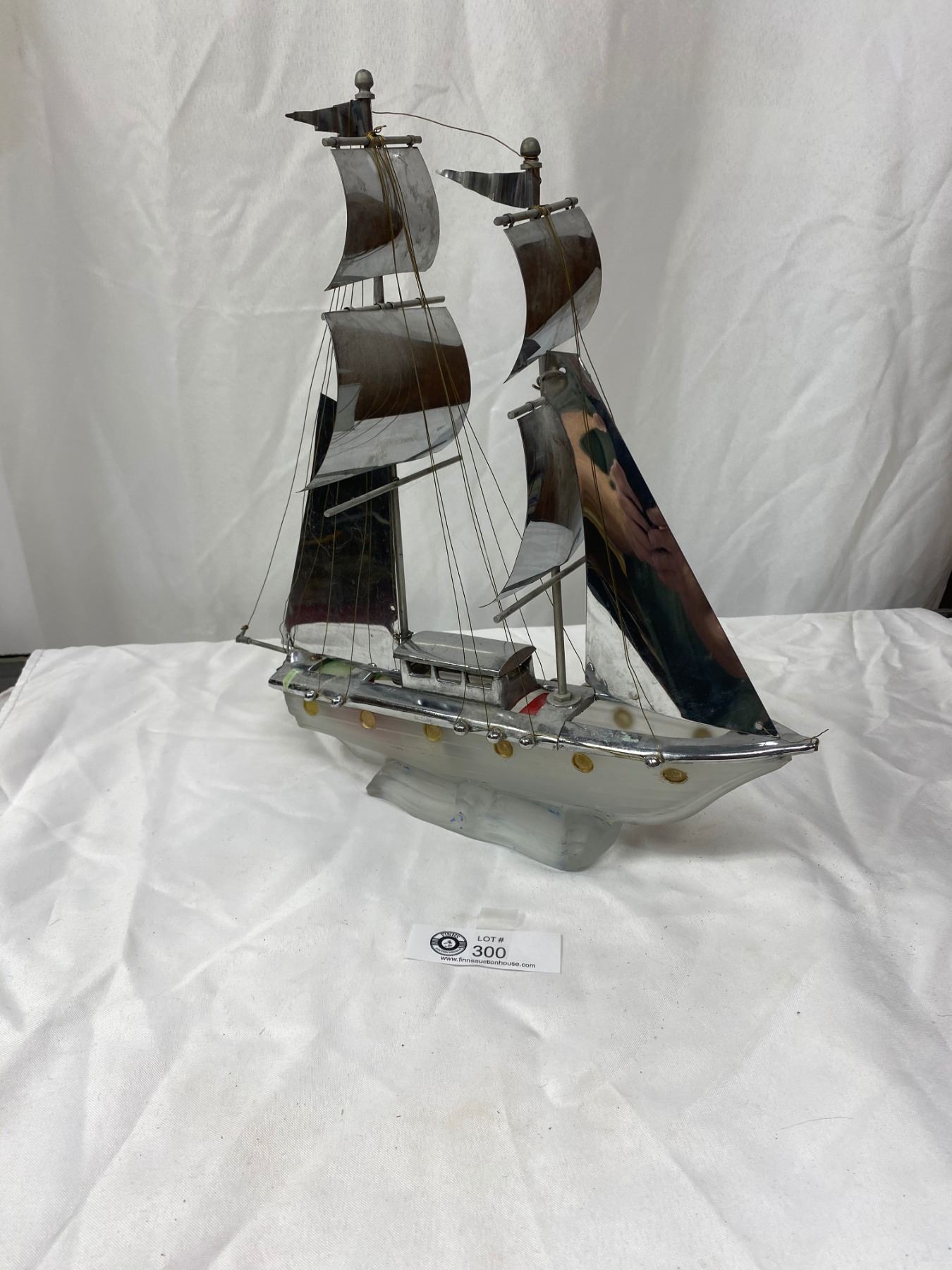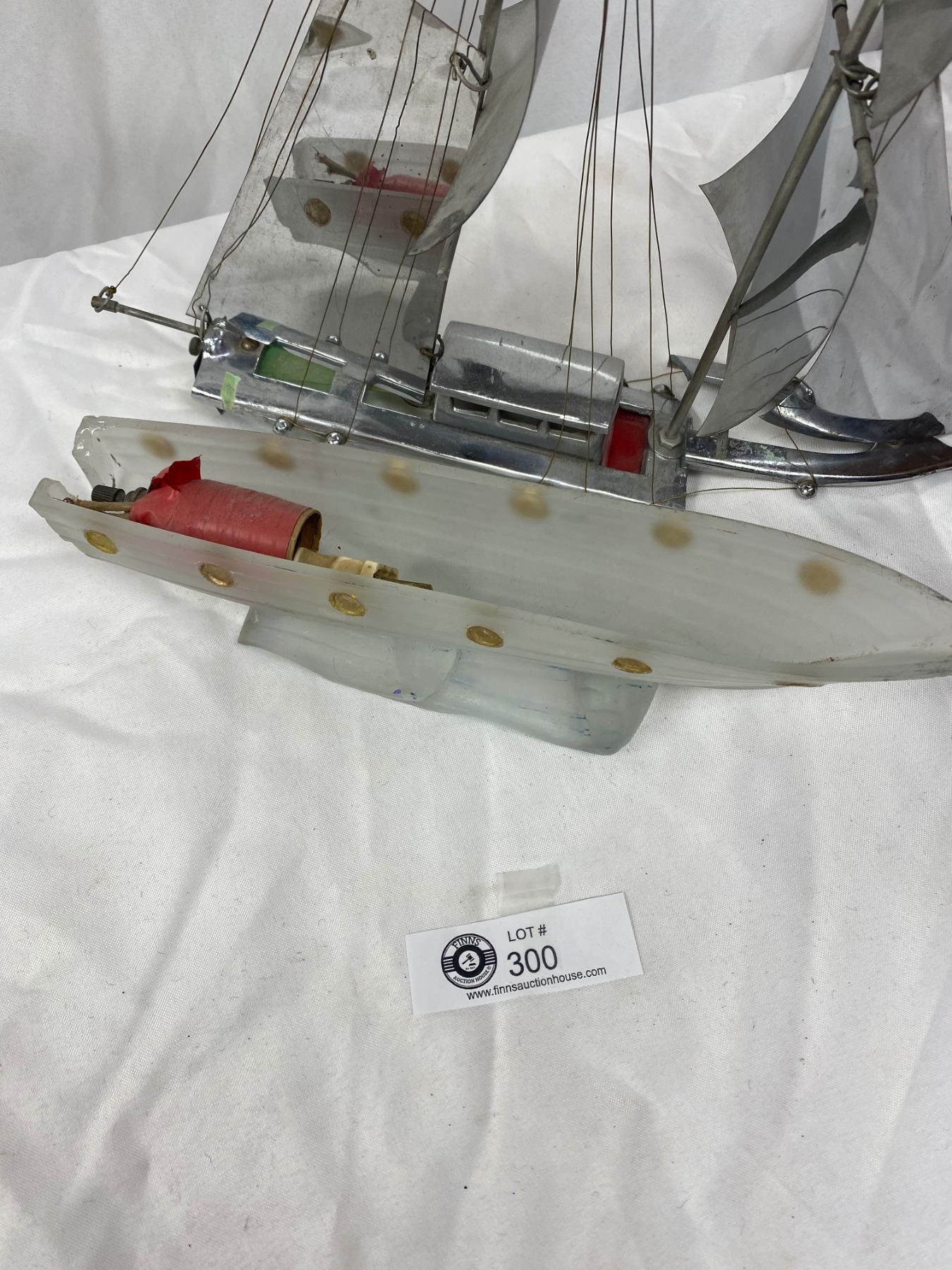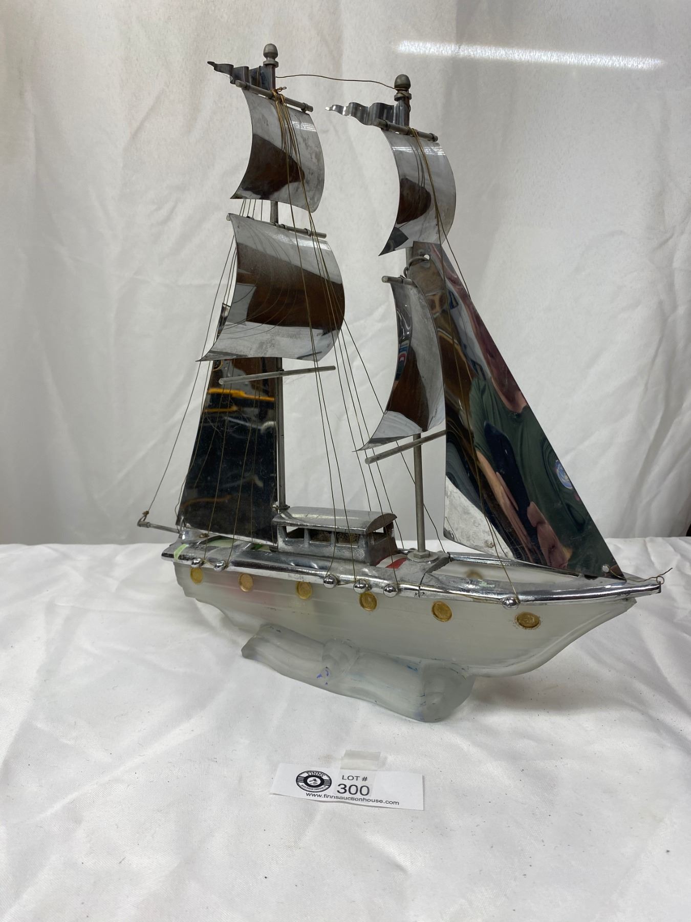 Art Deco Chrome and Glass Sailing Ship Lamp. Needs Work