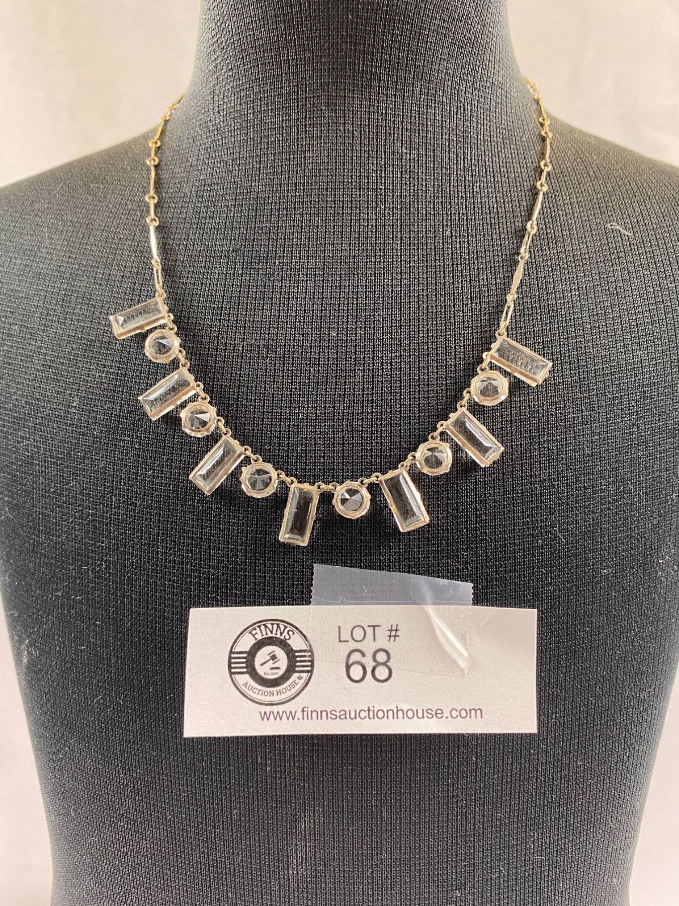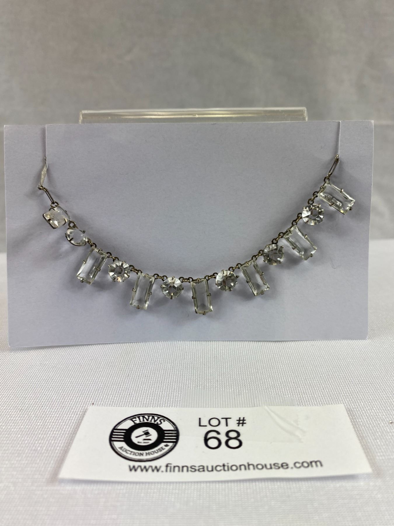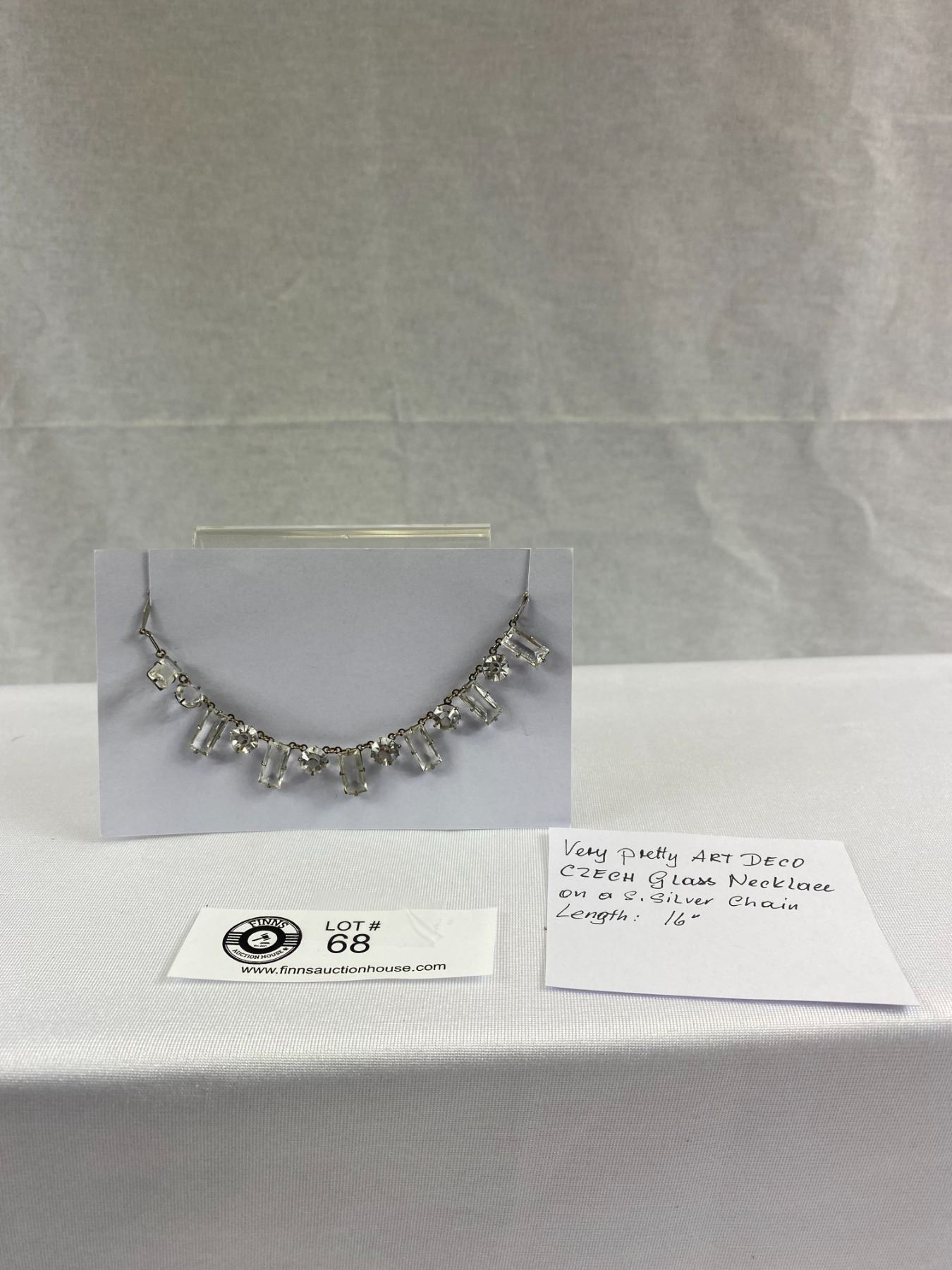 Art Deco Czech Glass Necklace on a Sterling Silver Chain Length 16''