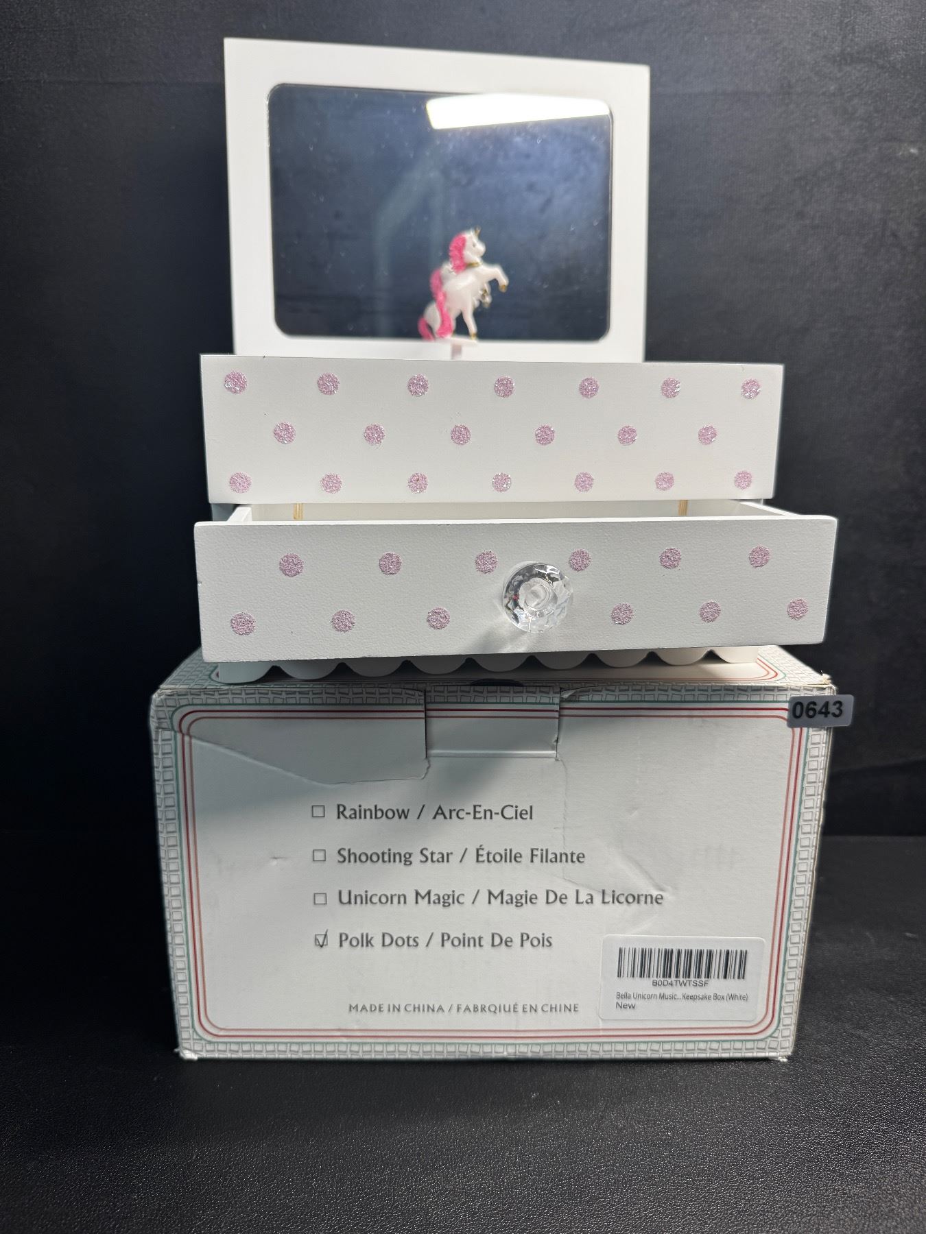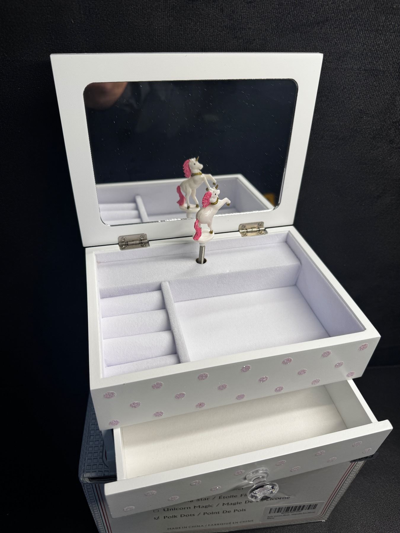 Art Lins Unicorn Jewelry Music Box - Polka Dot Glitter Design - Great Gift for Girls - Brand New