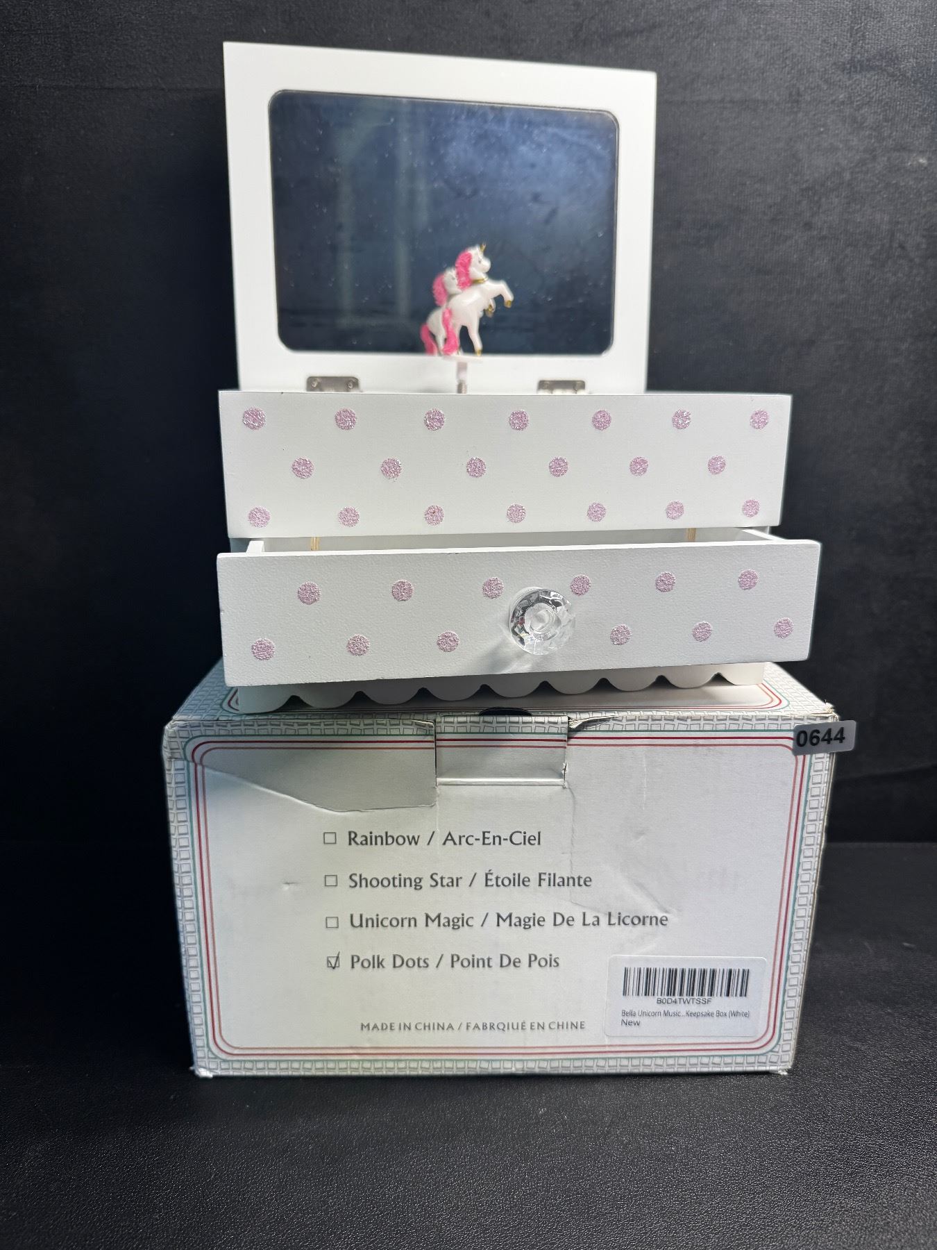 Art Lins Unicorn Jewelry Music Box - Polka Dot Glitter Design - Great Gift for Girls - Brand New