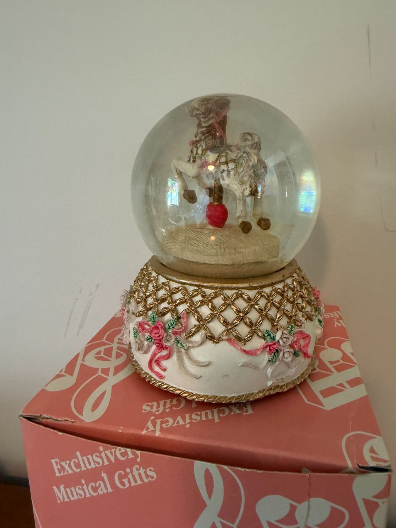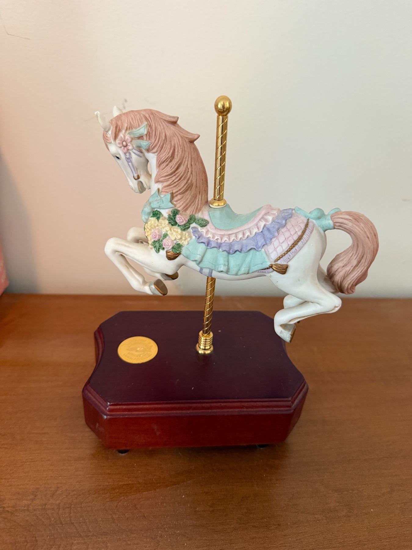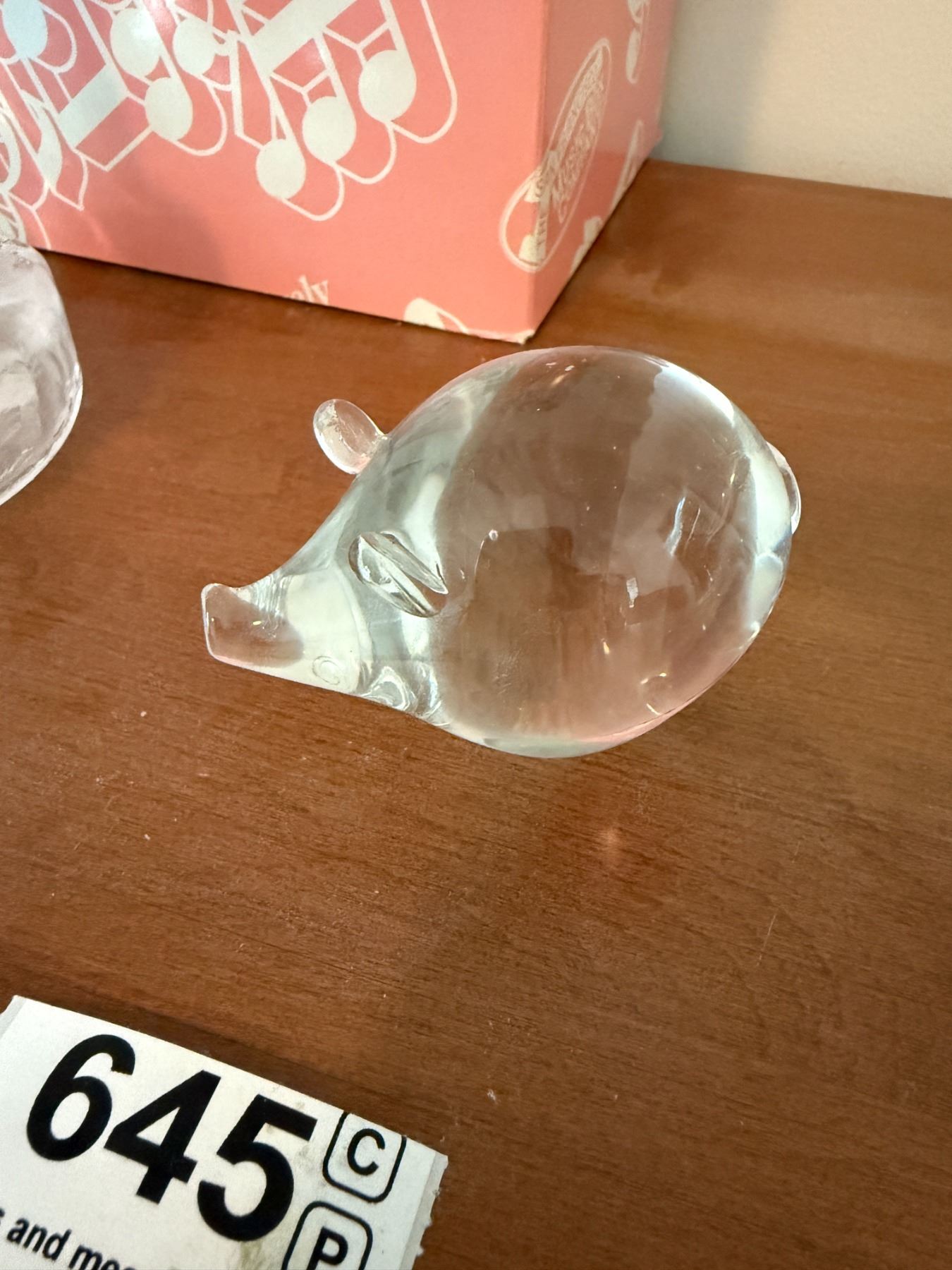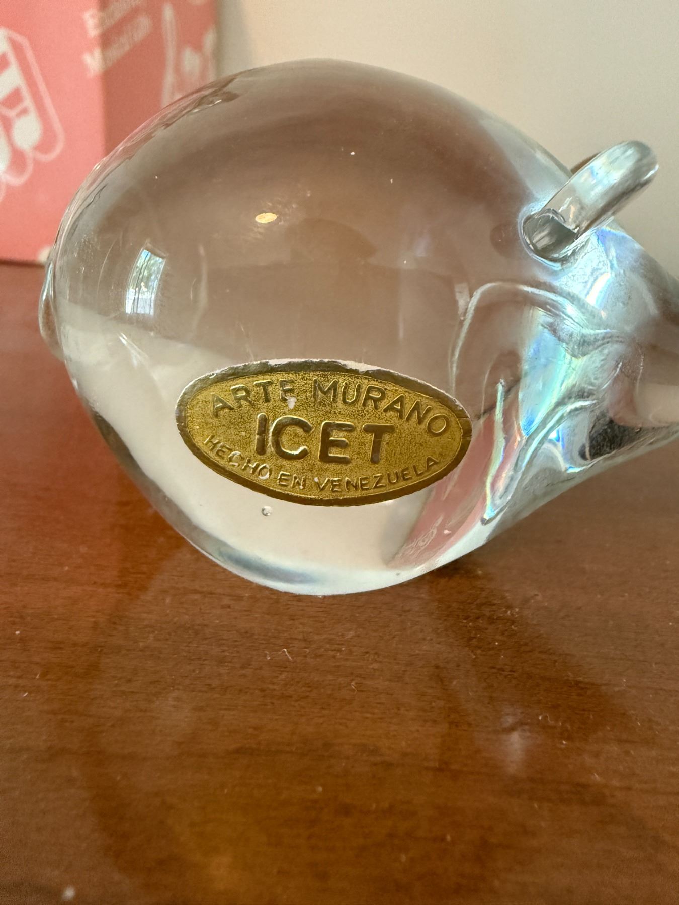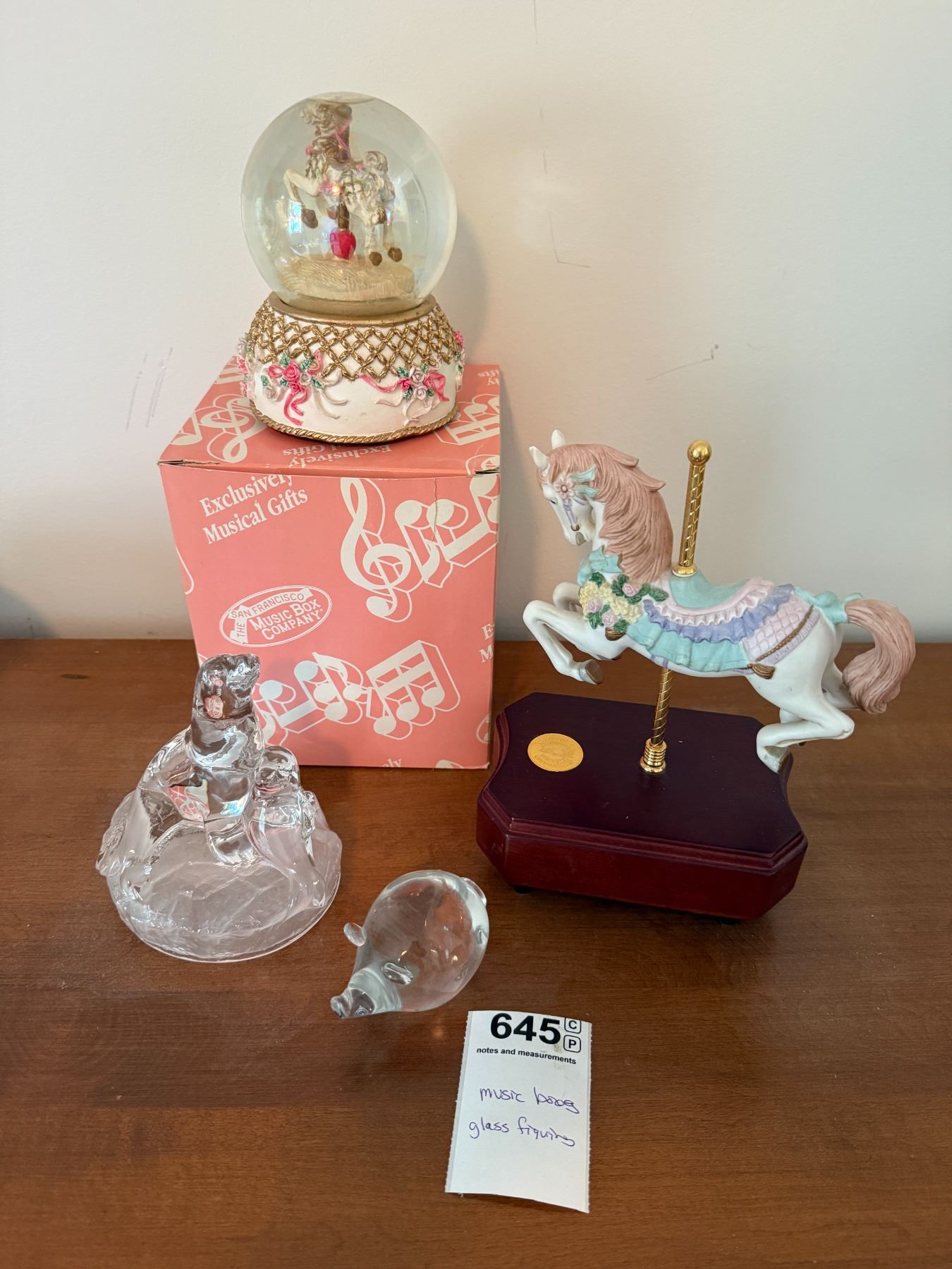 Vintage Arte Murano ICET art glass paperweight pig, glass seals, musical carousel horse and musical globe.