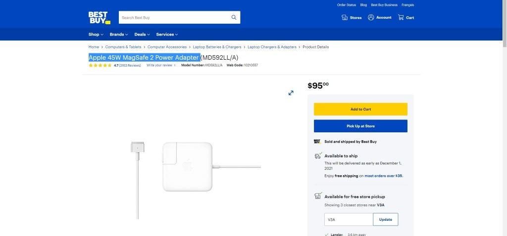 As New Apple 45W MagSafe 2 Power Adapter Retail $95