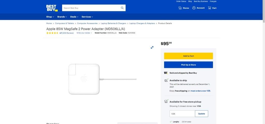 As New Apple 85W MagSafe 2 Power Adapter Retail $95