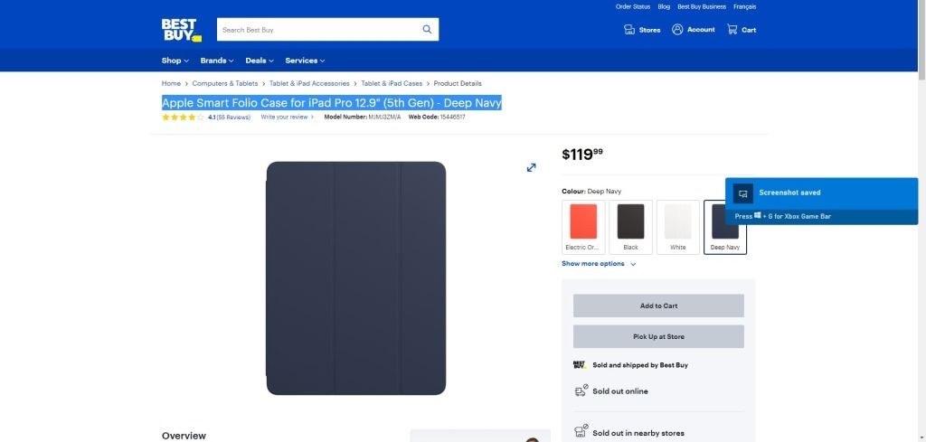 As New Apple Smart Folio Case for iPad Pro 12.9" (5th Gen) - Deep Navy and 12 w USB Wall CVharger Retail $150