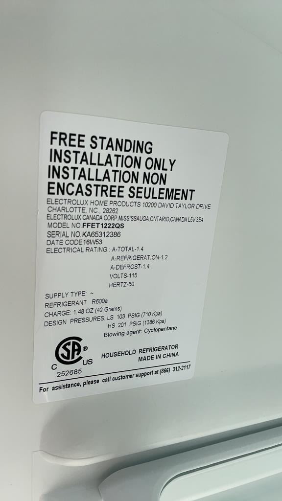 As New Frigidaire FFET1222QS Top Mount Refrigerator, 24 Width, 8.4 Capacity