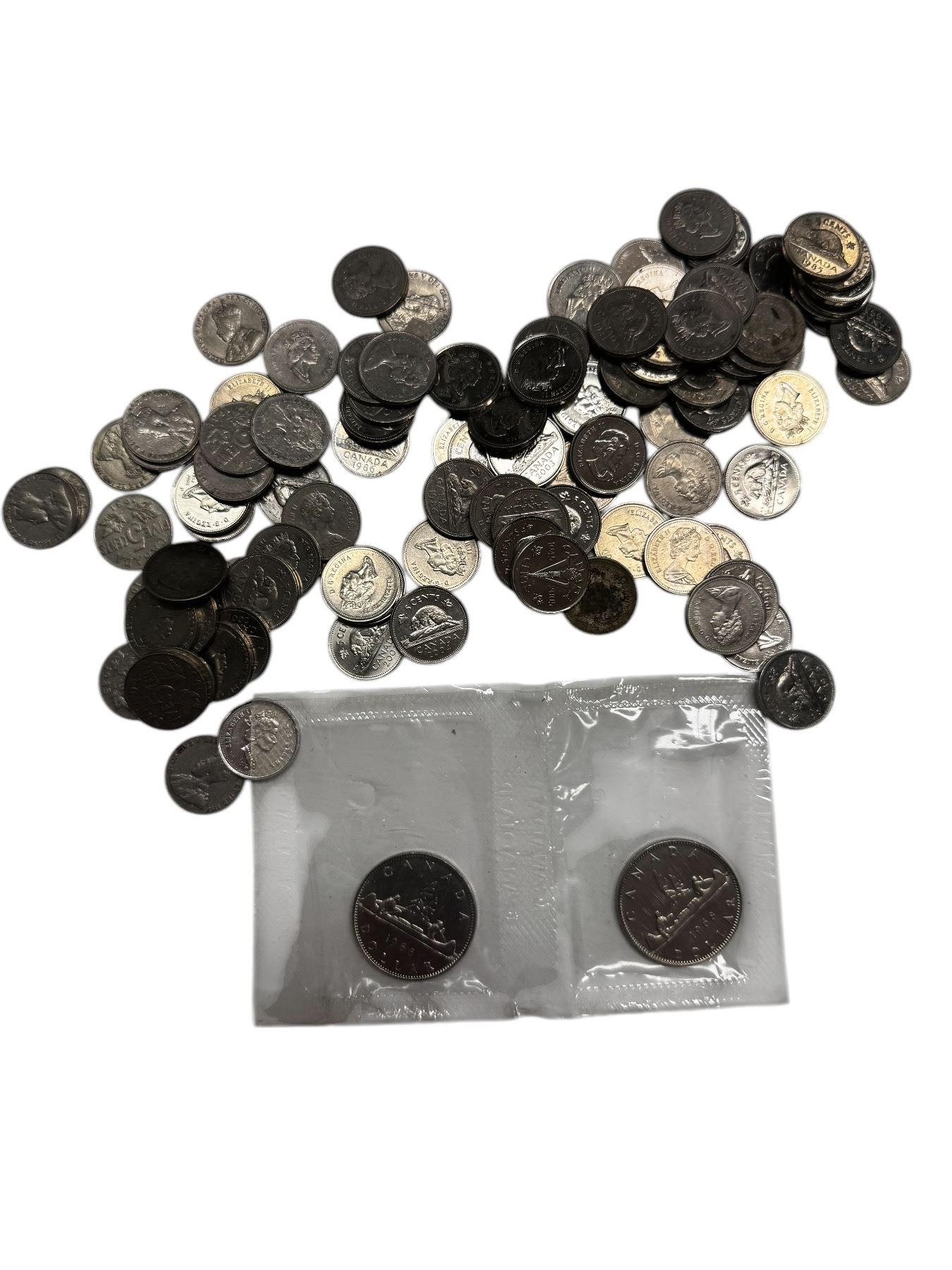 Assorted Canadian Nickels & 2 Canadian 1968 Dollar Coins