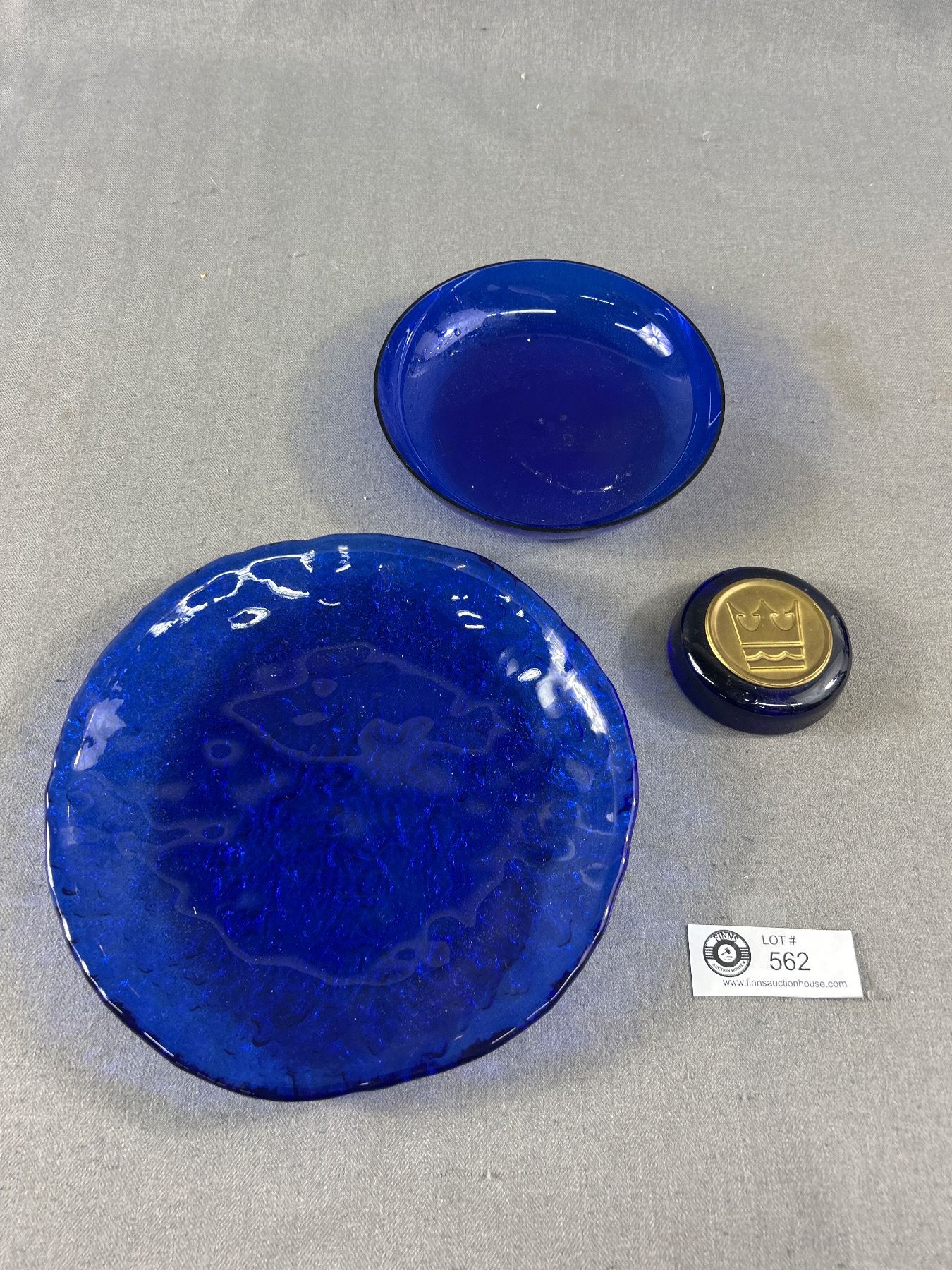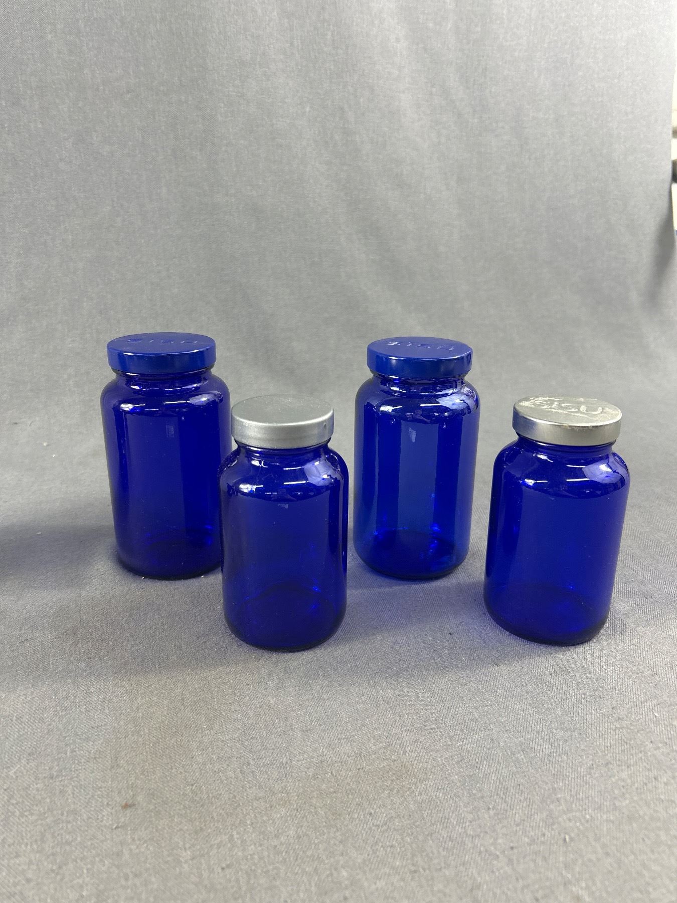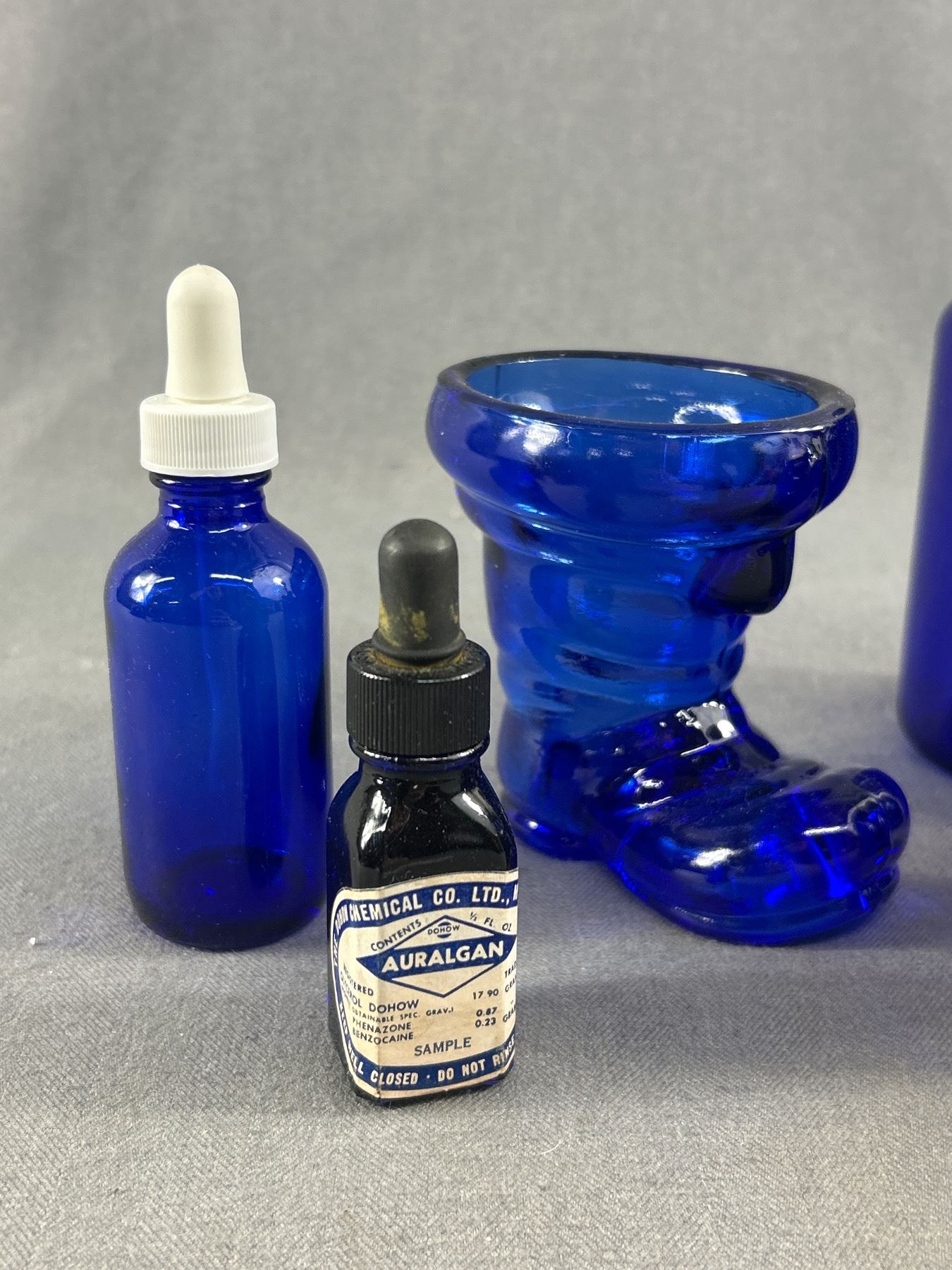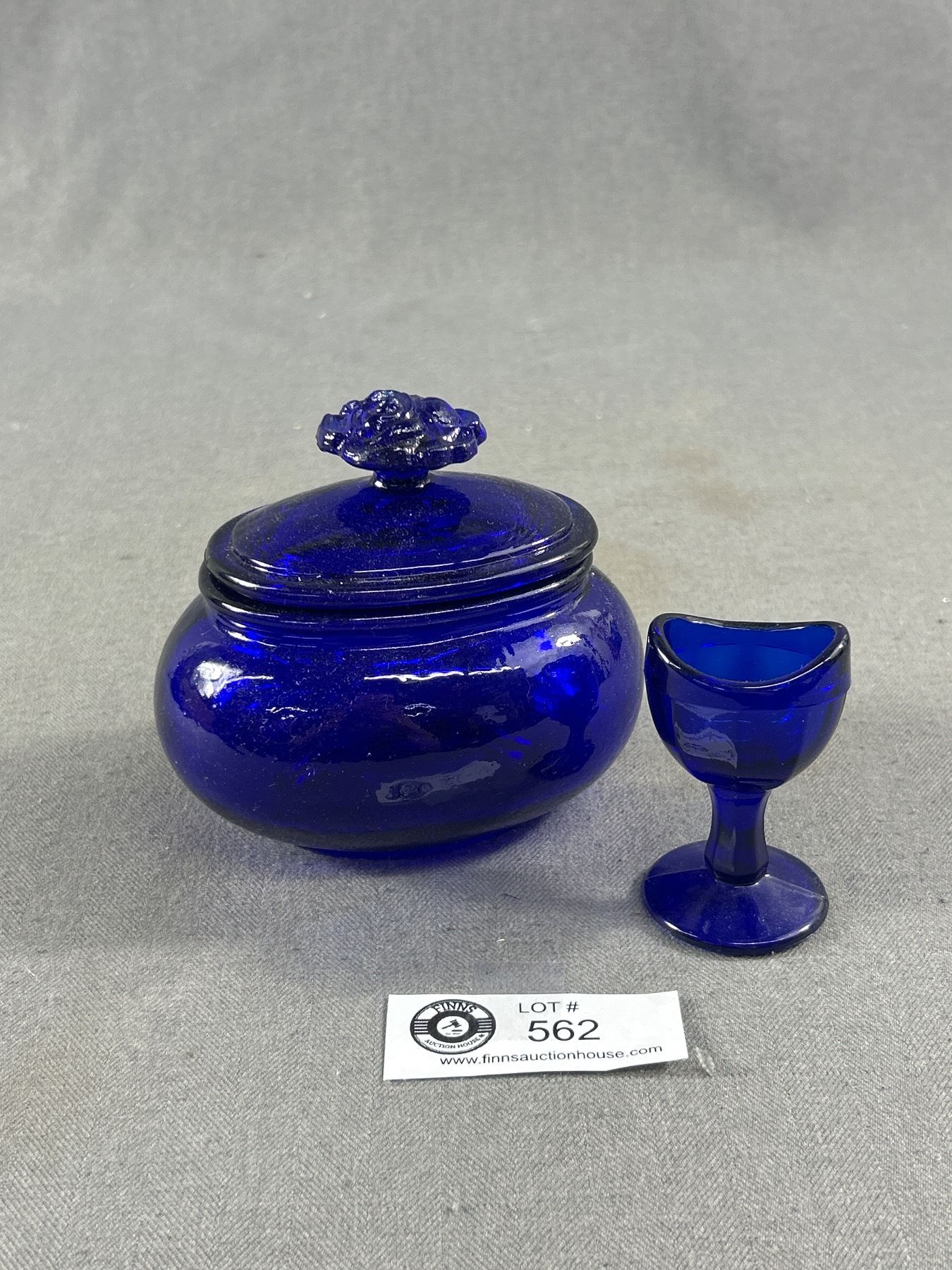 Assorted Cobalt Blue Glass - Jars, Plate, Bowl, Eye Bath & More