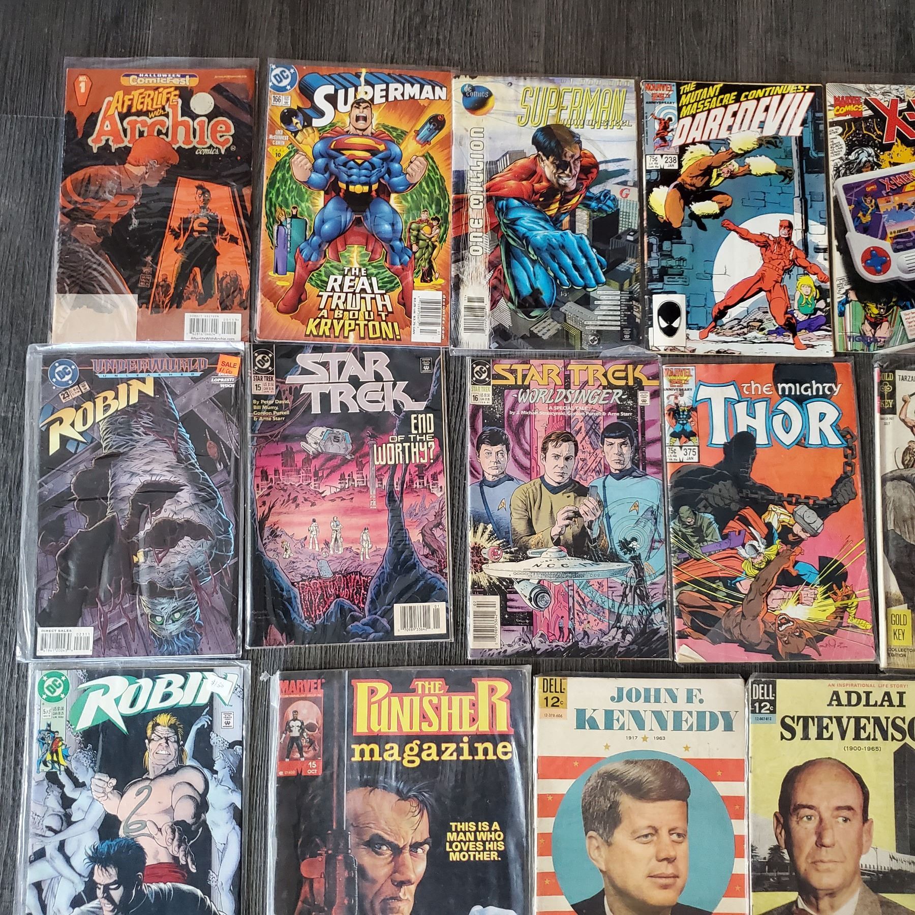 Assorted Collectible Comics, Star Trek, Superman, Robin & More - Most Items have not been tested - 17% Buyer Fee. Payment Processed through Live Auction World ( Visa or Master Card ) pick up Saturday, or Tuesday