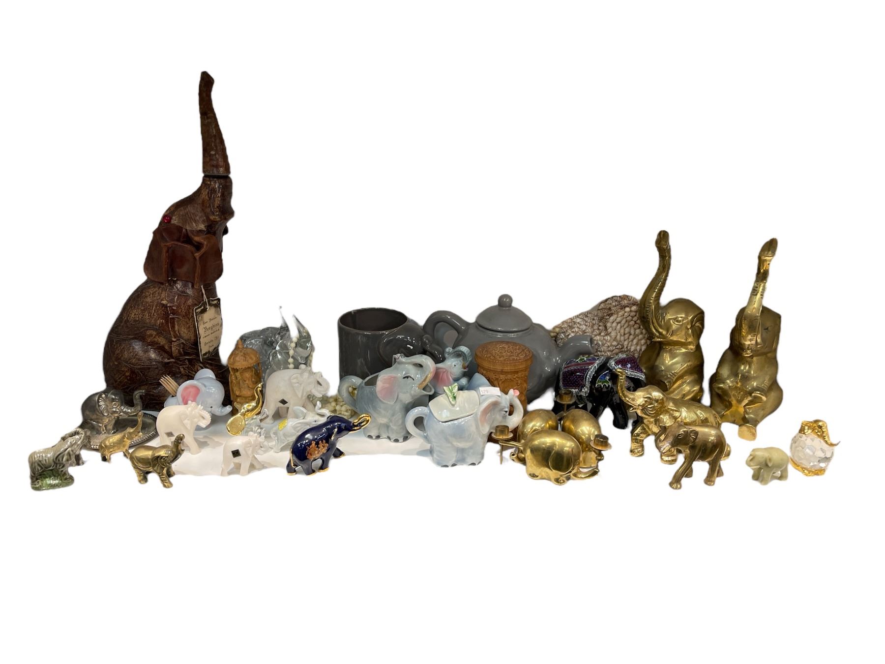 Assorted Elephant Collectibles, Brass, Teapot, Cups, Etc..