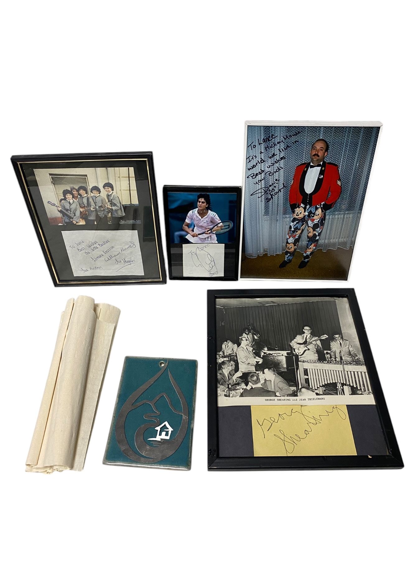 Assorted Framed Autographed Photos With Vintage Papyrus Paper