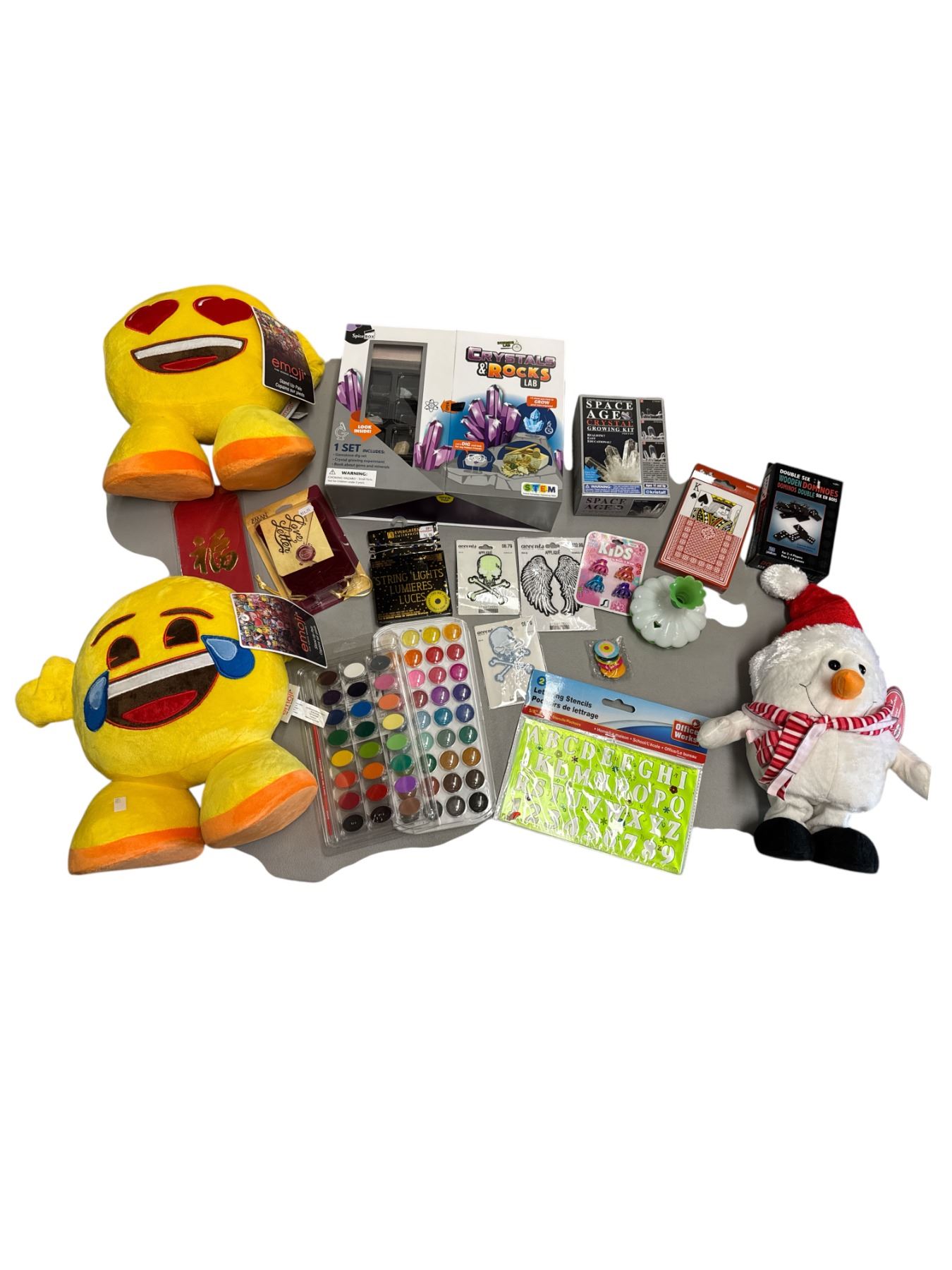 Assorted Games, Plushes, Crystal/Rocks Set, & More
