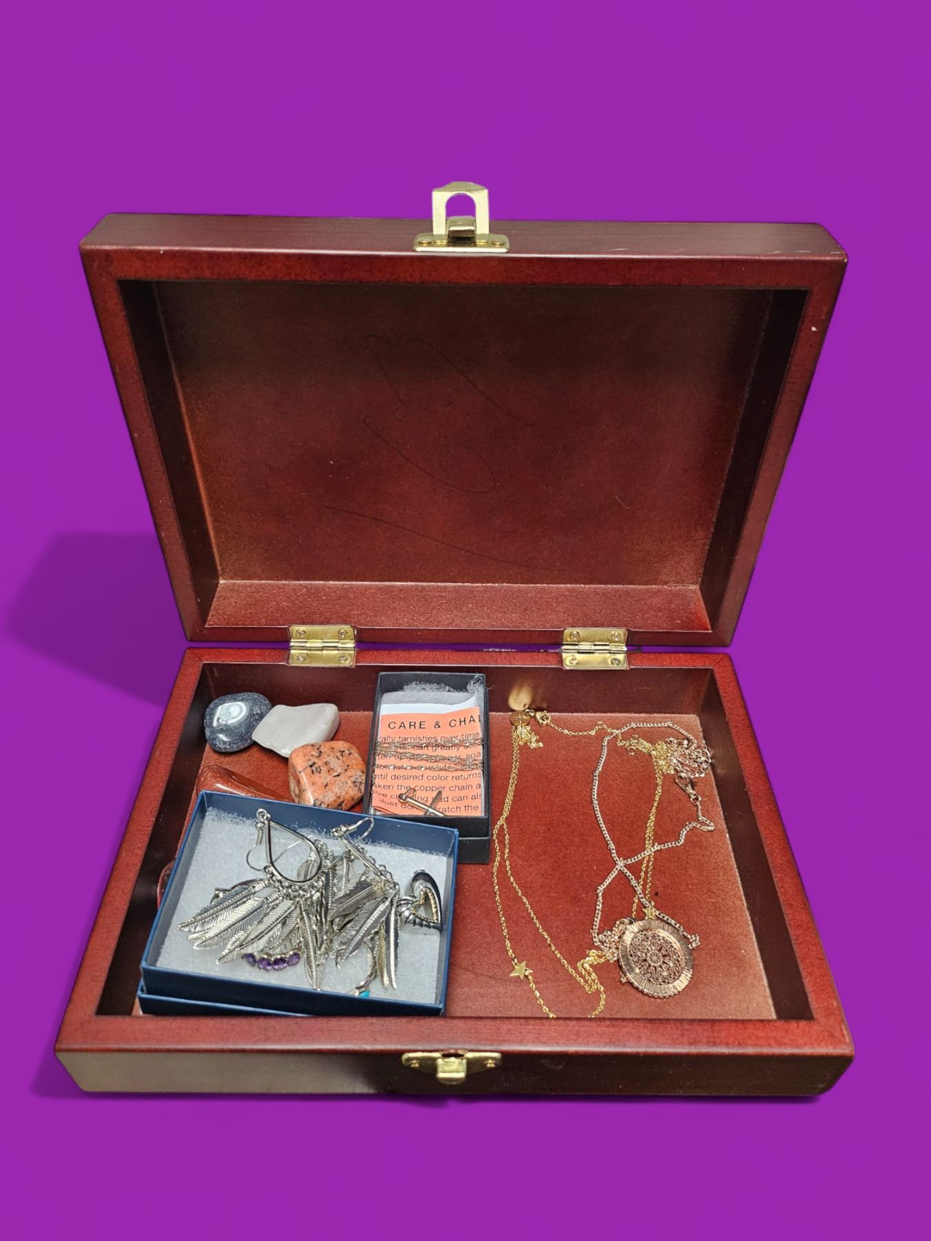Assorted jewlery and wood box