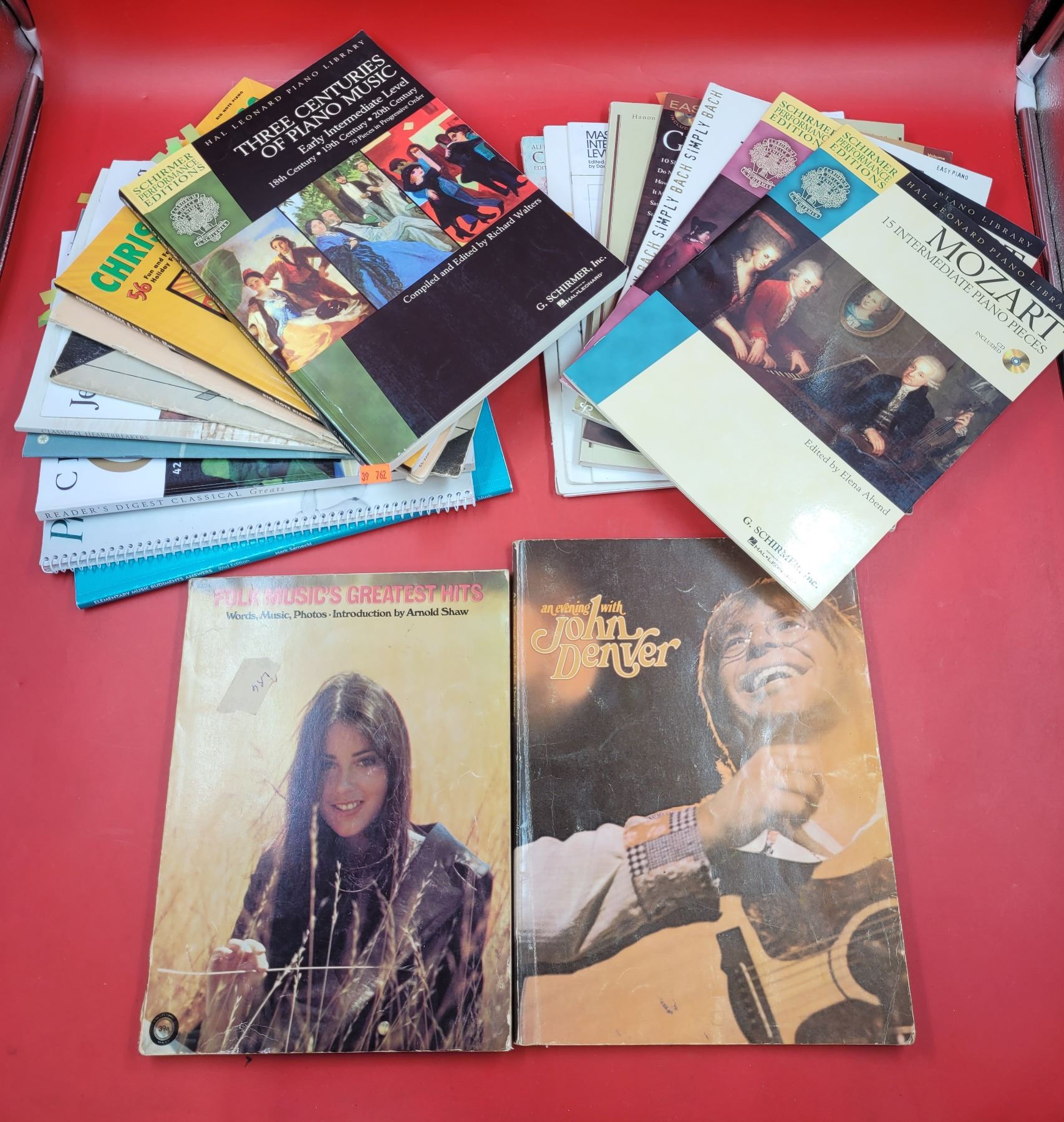 Assorted Music Book Lot w/ Mozart Intermediate Piano Pieces, Folk Music's Greatest Hits, & More