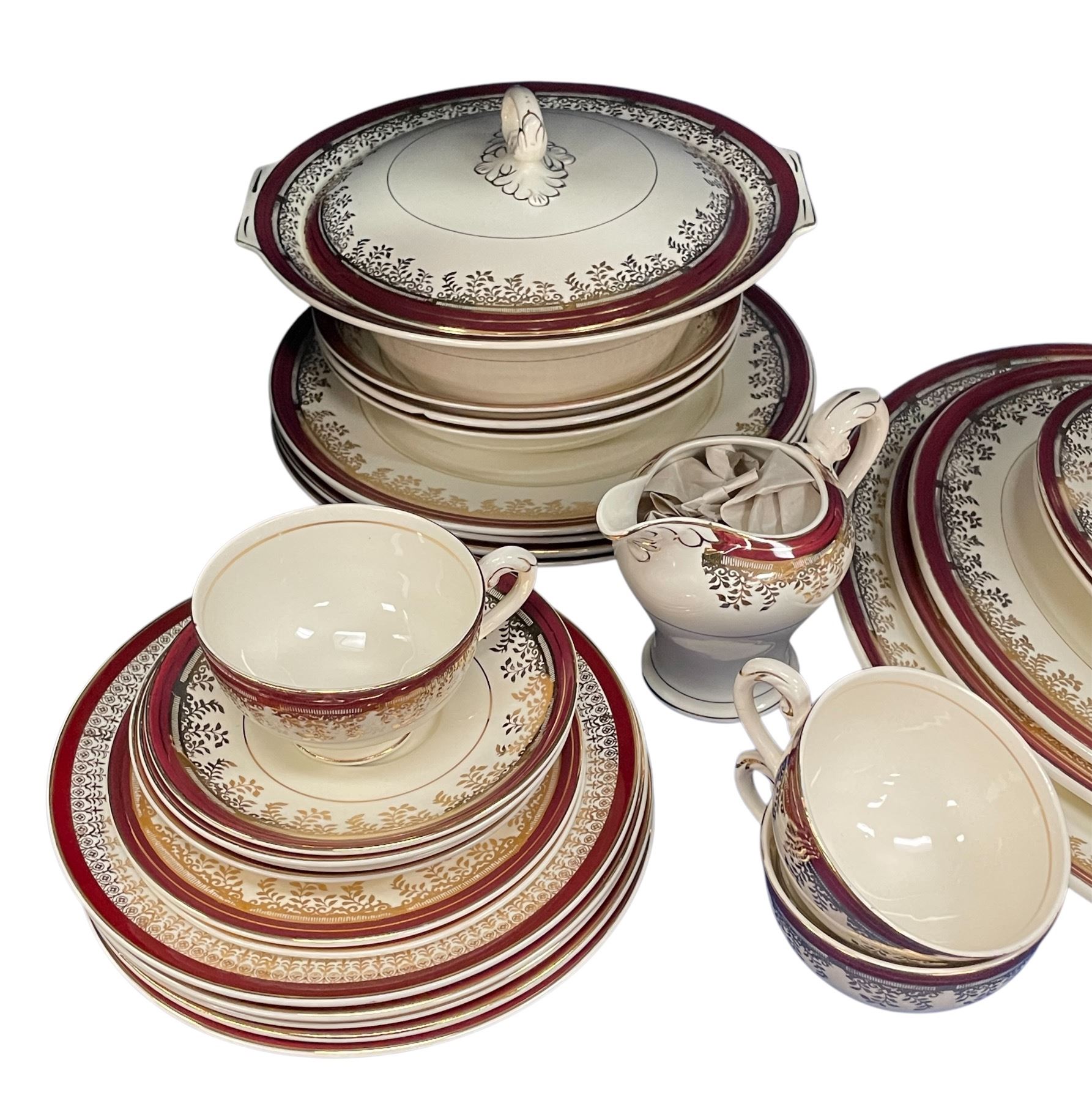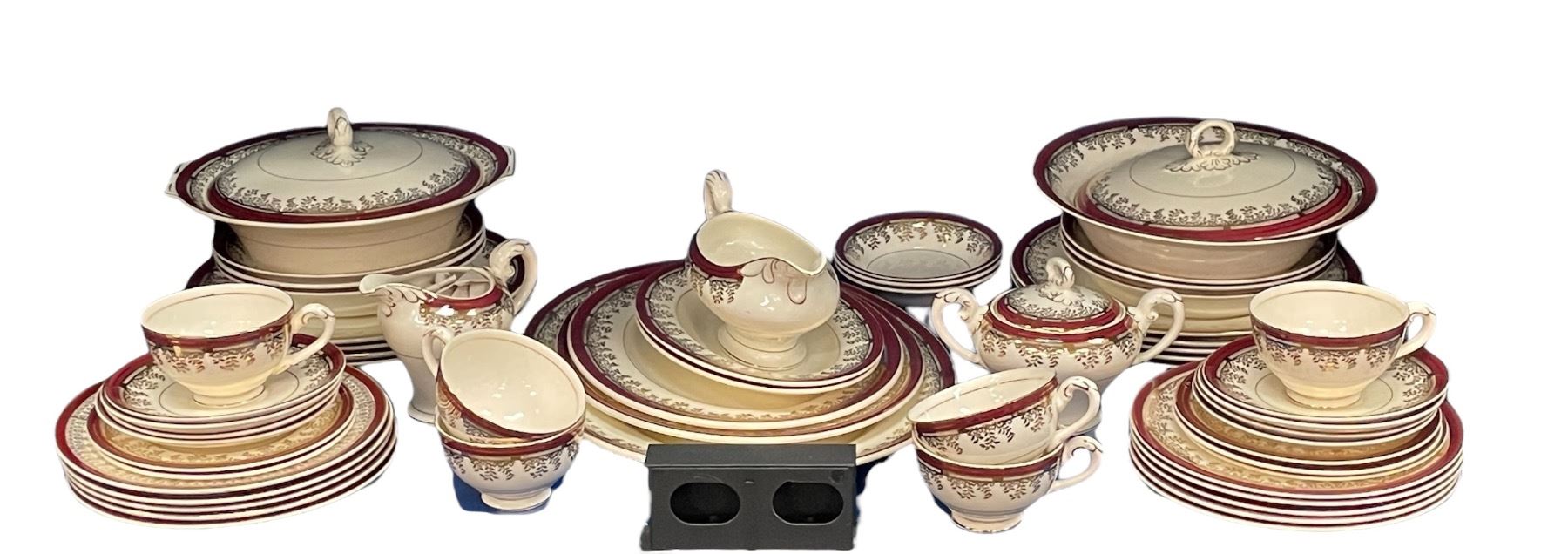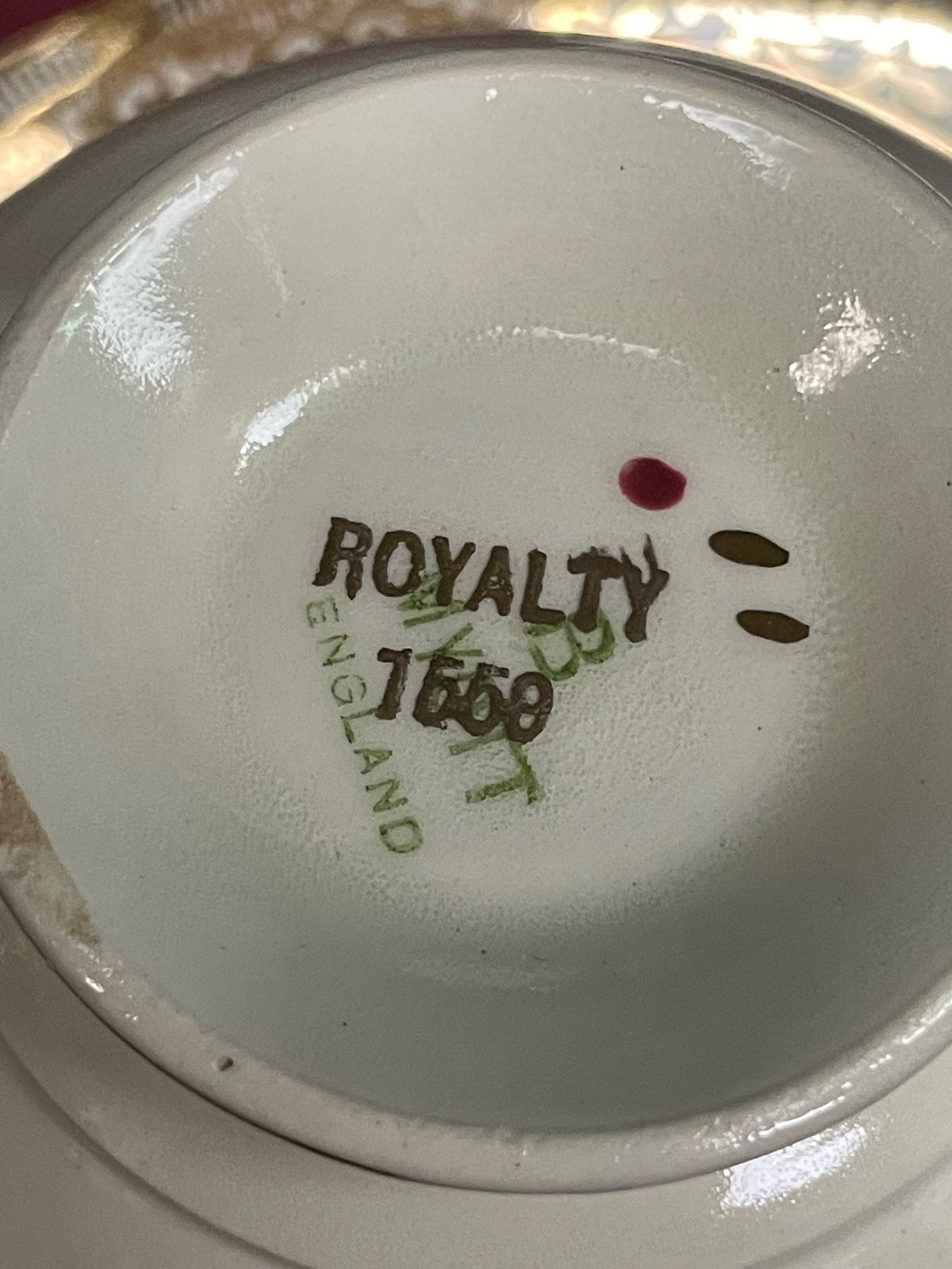 Assorted Partial Place Setting "Royalty" Tea Cups, Saucers, Creamer, Plates, Bowls, Etc..