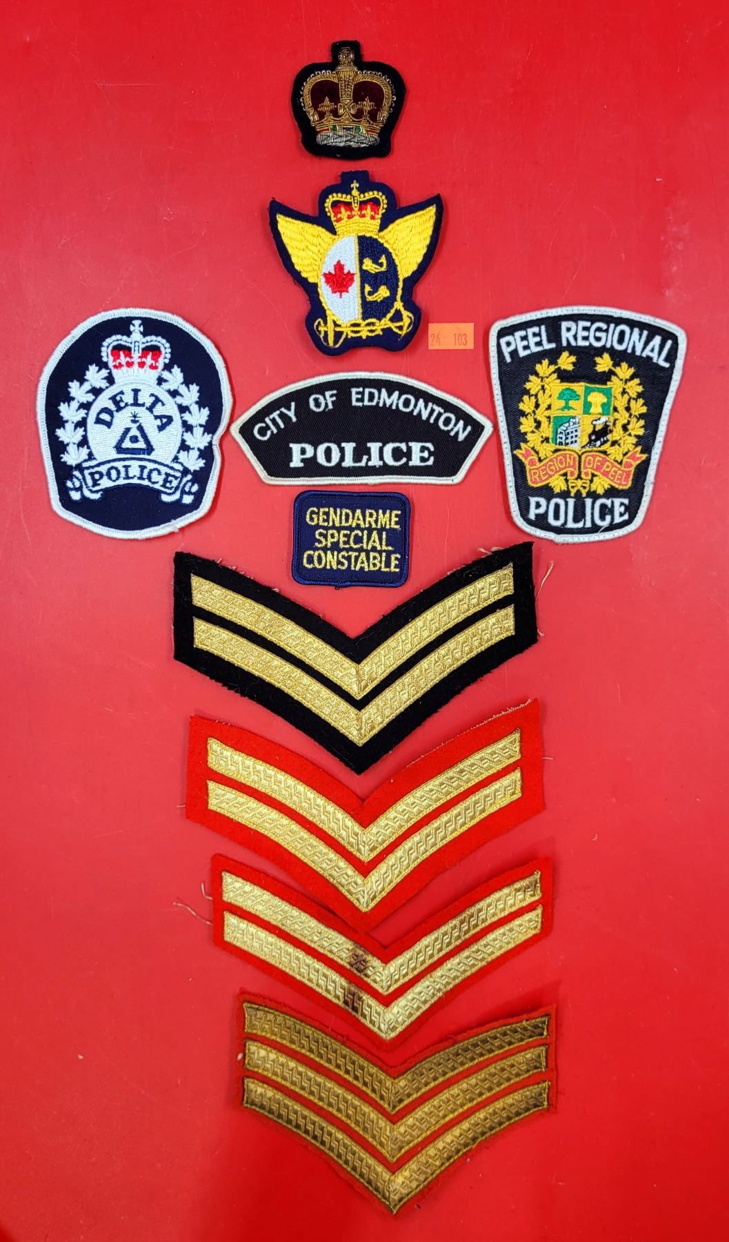 Assorted Police/Military Patches w/ Rank Insignias, Edmonton Police Patch, & More