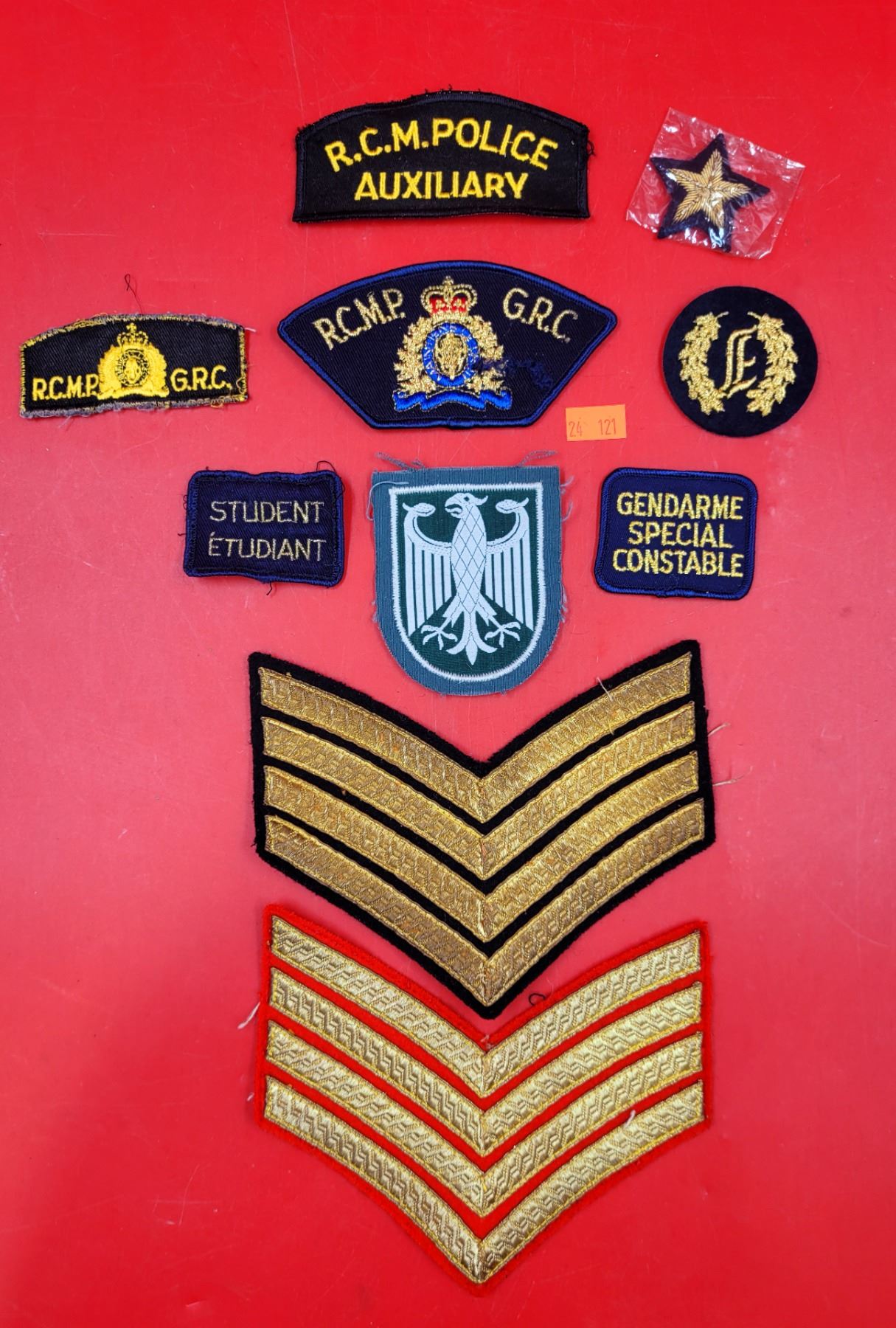 Assorted Police/Military Patches w/ Rank Insignias, RCMP Patches, & More