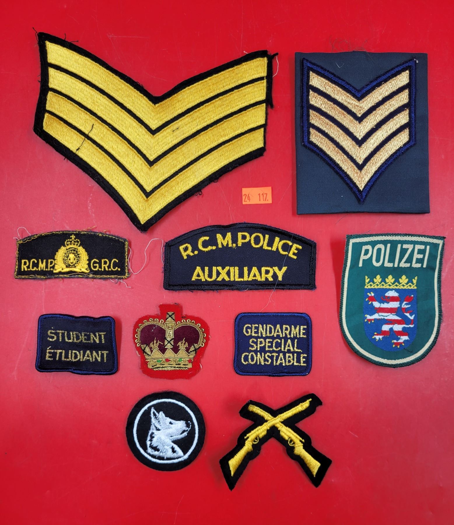 Assorted Police/Military Patches w/ Rank Insignias, RCMP Patches, Polizei Patch, & More