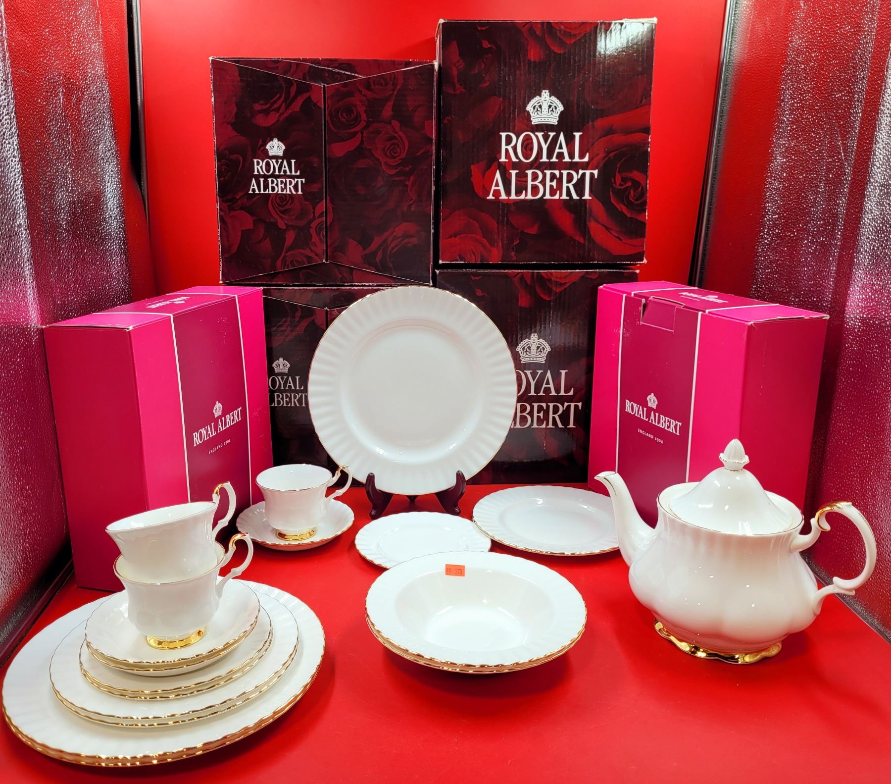 Assorted Royal Albert Fine China w/ 7 Place Settings (5 pc./set), 2 Soup Bowls, & Teapot