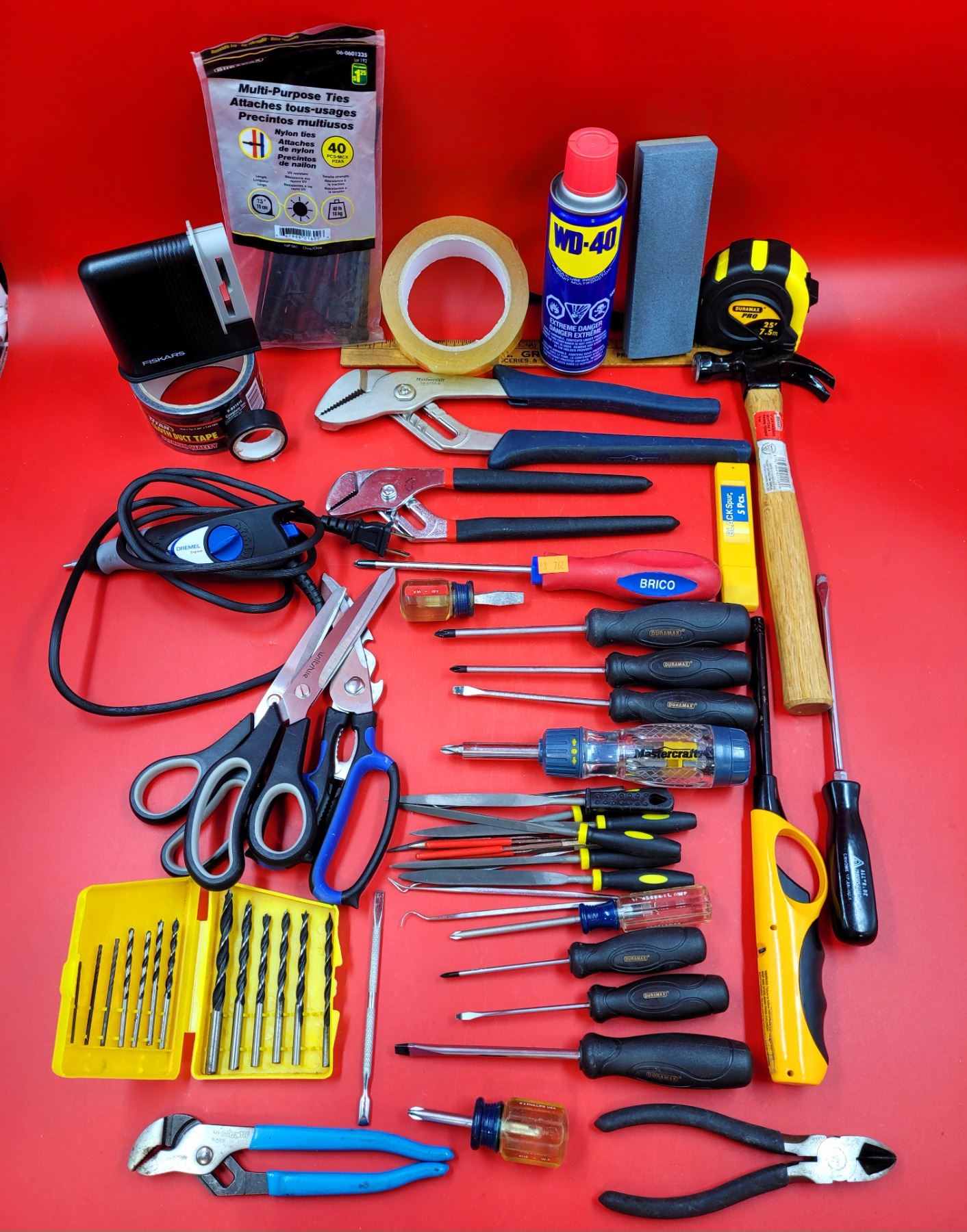 Assorted Tool Lot w/ Screwdrivers, Scissors, Hammer, Zip Ties, WD-40, & More