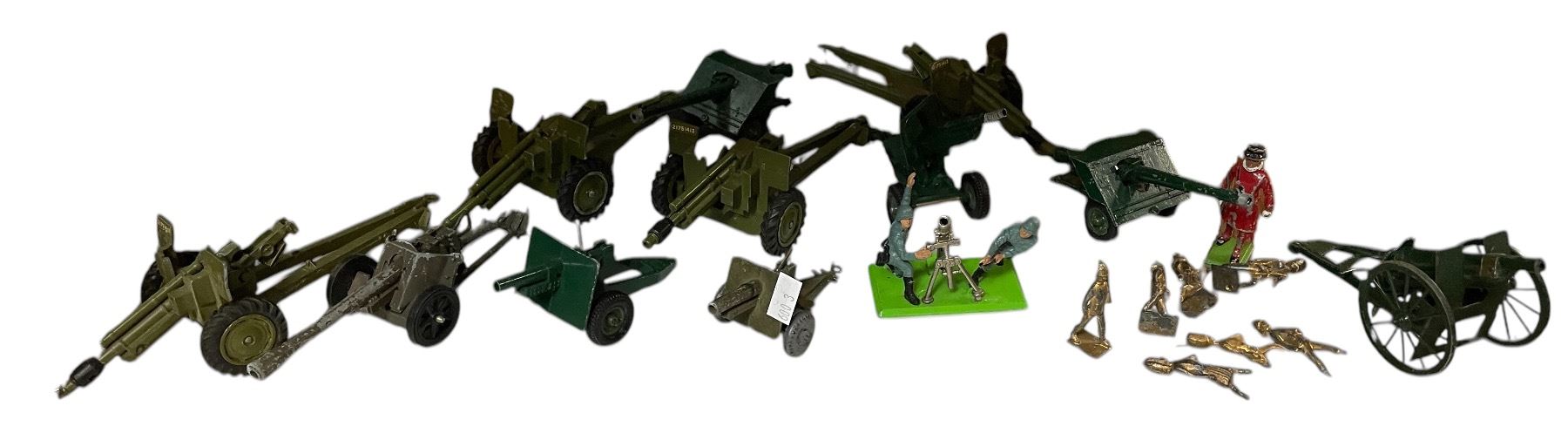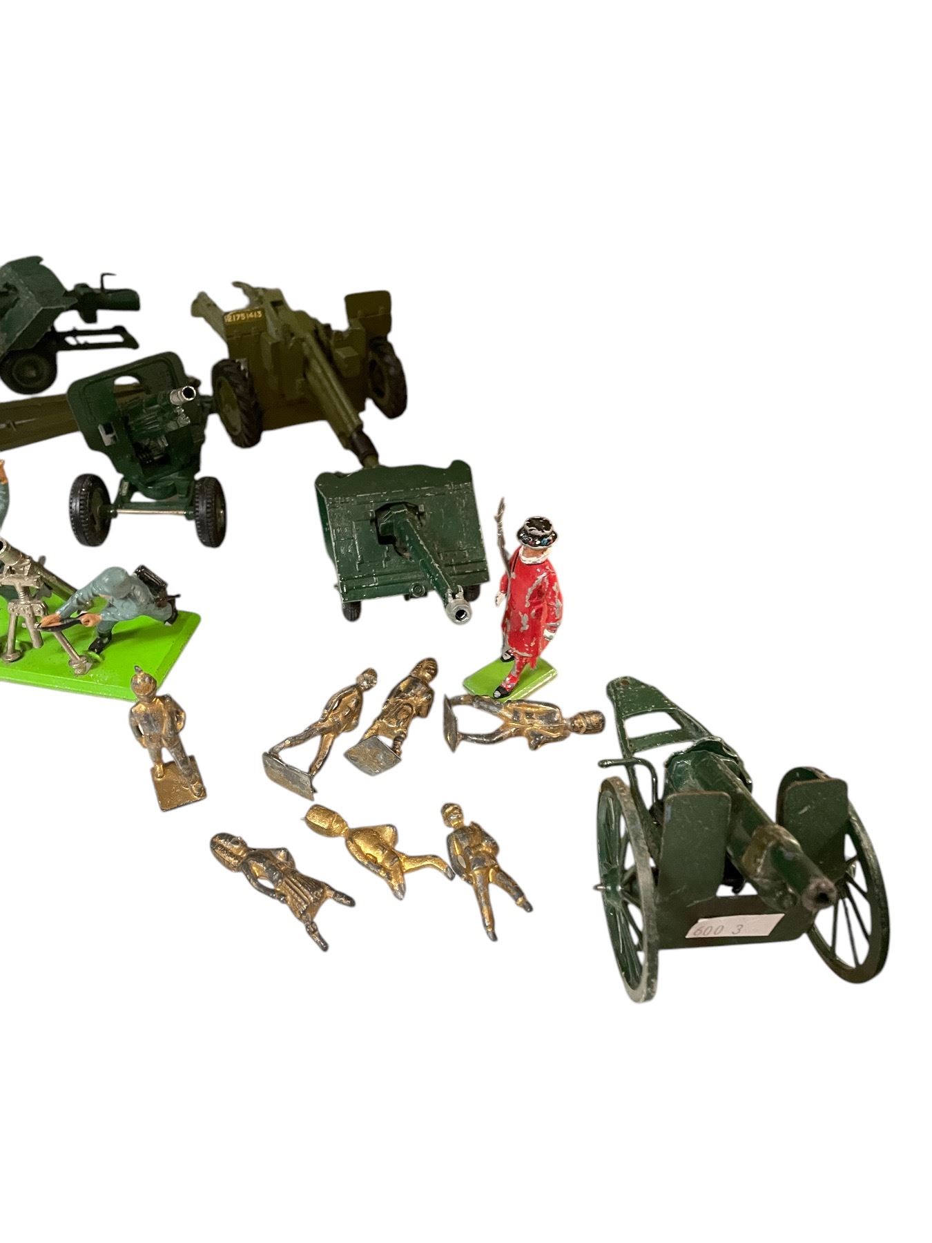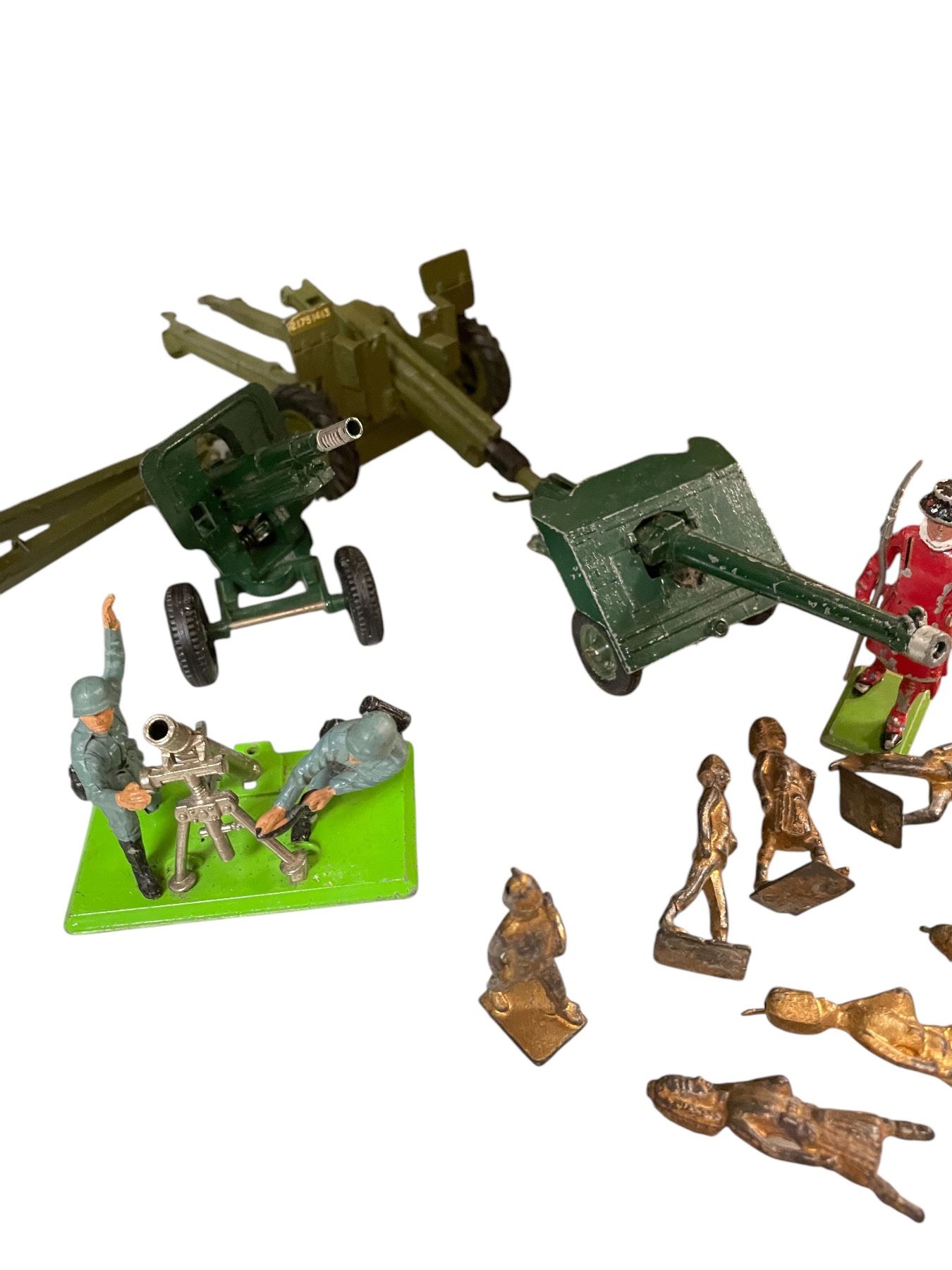 Assorted Vintage Die Cast Metal Army Toys: Canons & People