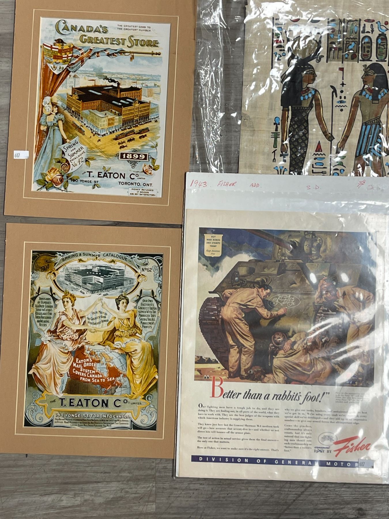 Assorted Vintage Magazine Advertisement Cutouts & Egyptian Art