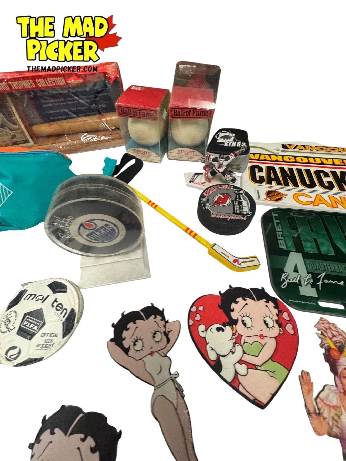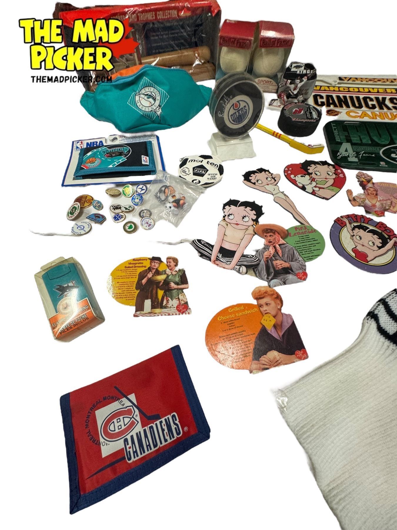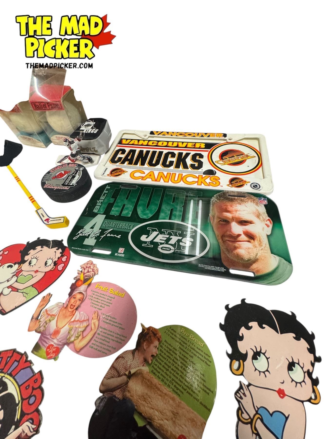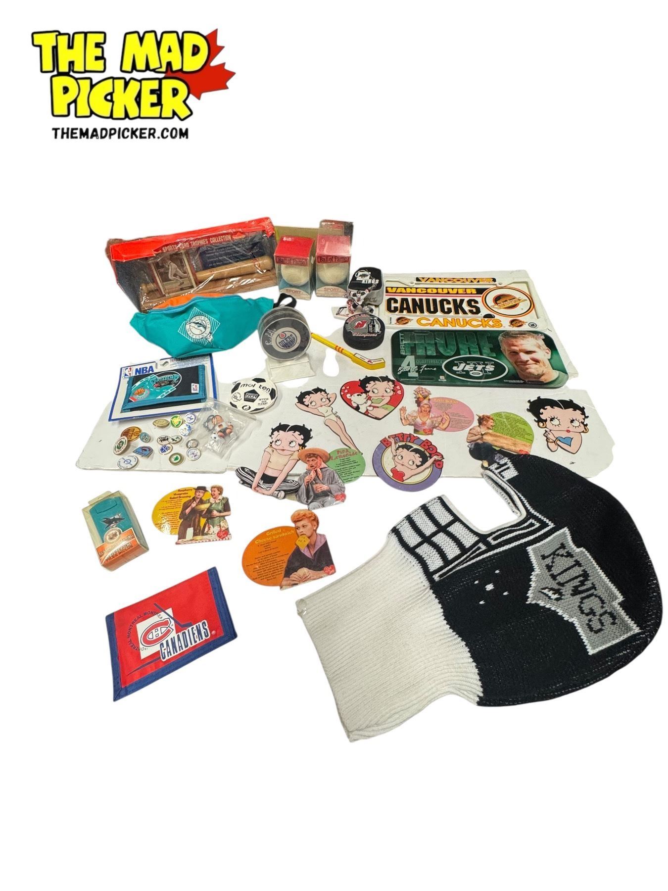 Assorted Vintage Sports Collectibles: Marlins, Canucks, Jets, Kings, & More