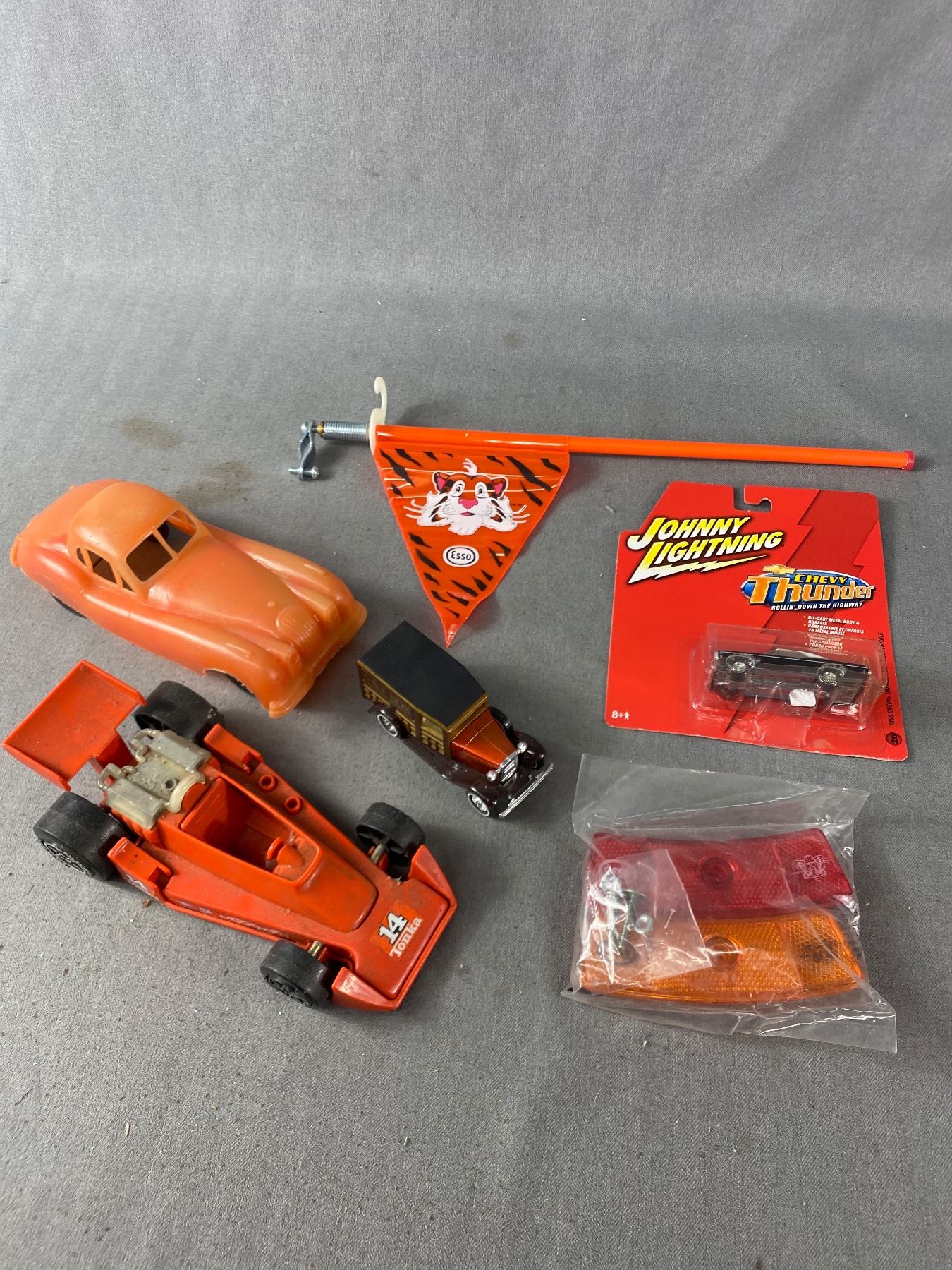 Assorted Vintage Toys Including Esso Tiger Flag & Bicycle Reflectors