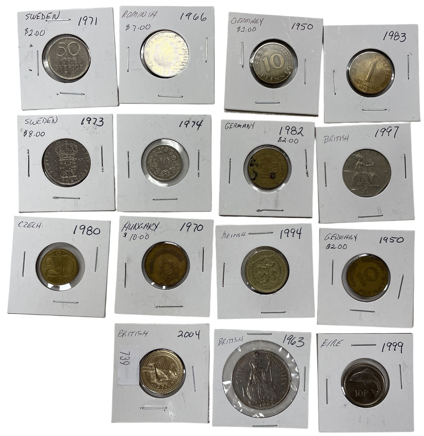 Assorted World Coins: Sweden, Britain, Germany, Romania, & More