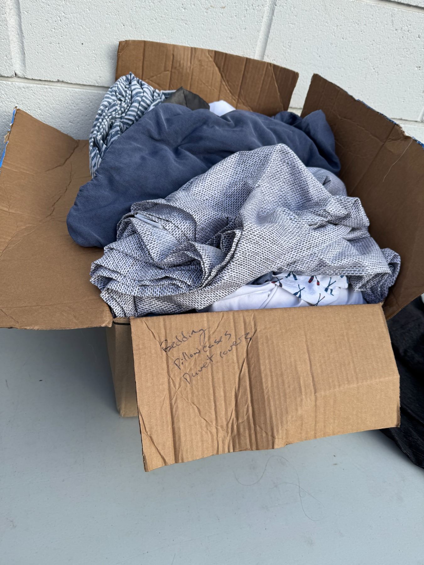 Assorted bedding, pillowcases, and duvet cover