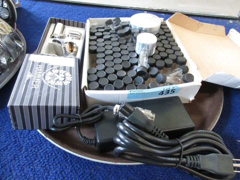 Glass ashtrays with Marijuana emblems, fashion pipe pendants and e-cigarettes.