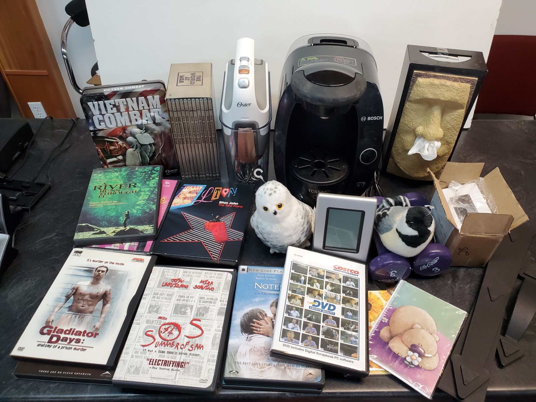 Assorted household items including tassimo, DVD's and much much more Most Items have not been tested - 17% Buyer Fee. Payment Processed through Live Auction World ( Visa or Master Card ) pick up Saturday, or Tuesday