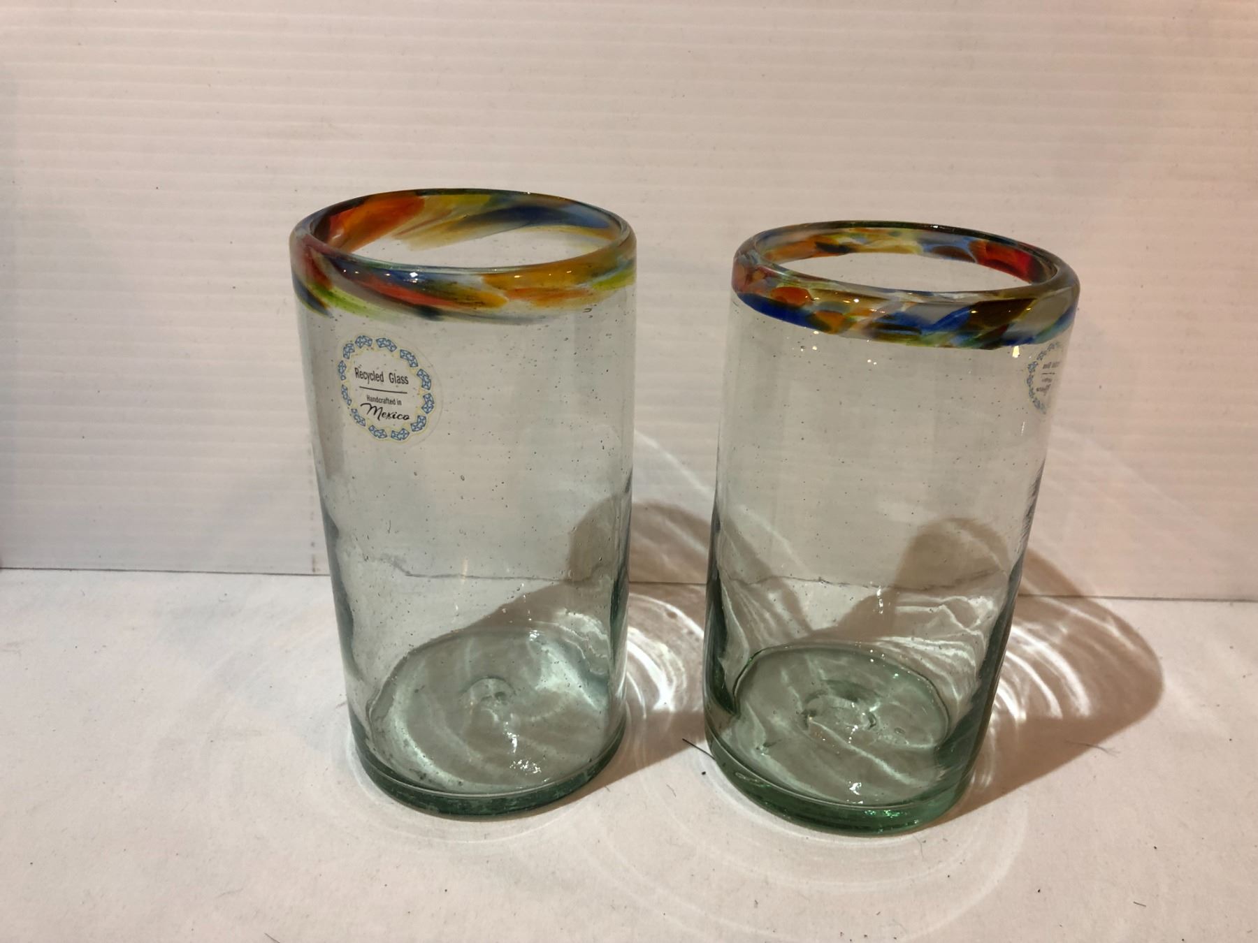 2 x Hand crafted glasses from Mexico, made from recycled glass.