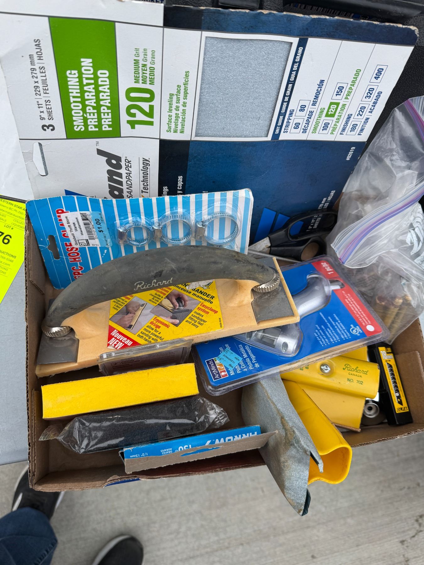 Assorted tools sandpapers etc