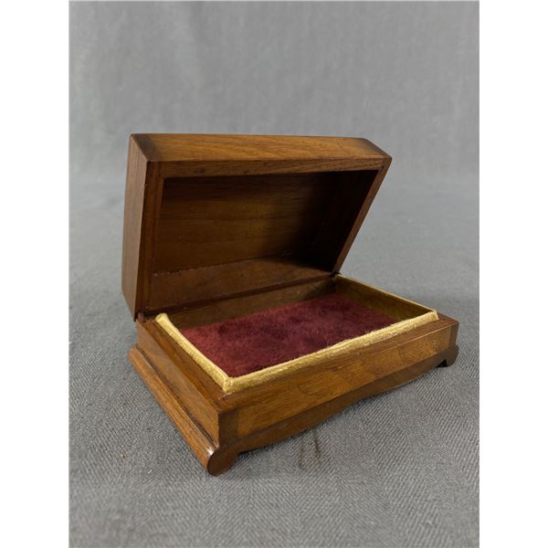 Vintage Wood & Felt Lined Box w/ Assorted Costume Jewelry Pieces & More. Approx. 10.5" x 14.5" x 3"