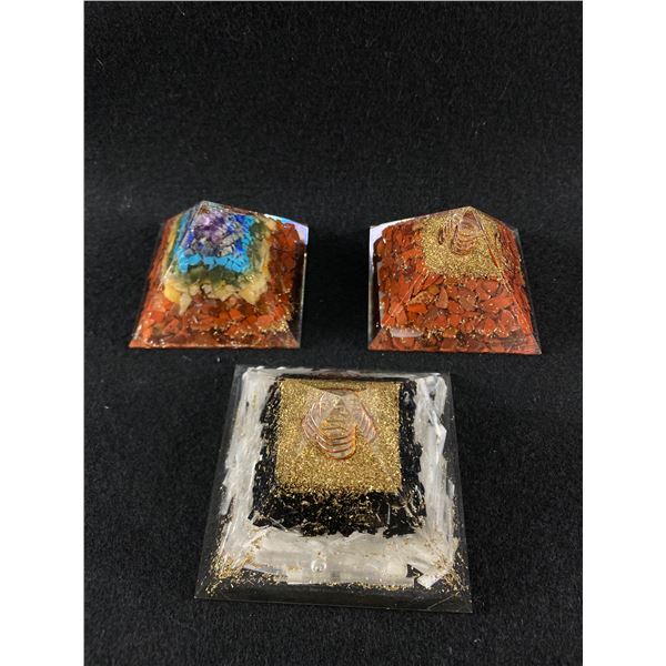 Lot Of 3 Pyramids - Red Jasper w/Clear Quartz & 7 Chakra. Retails $280.00 Each Plus Black Tower w/Se