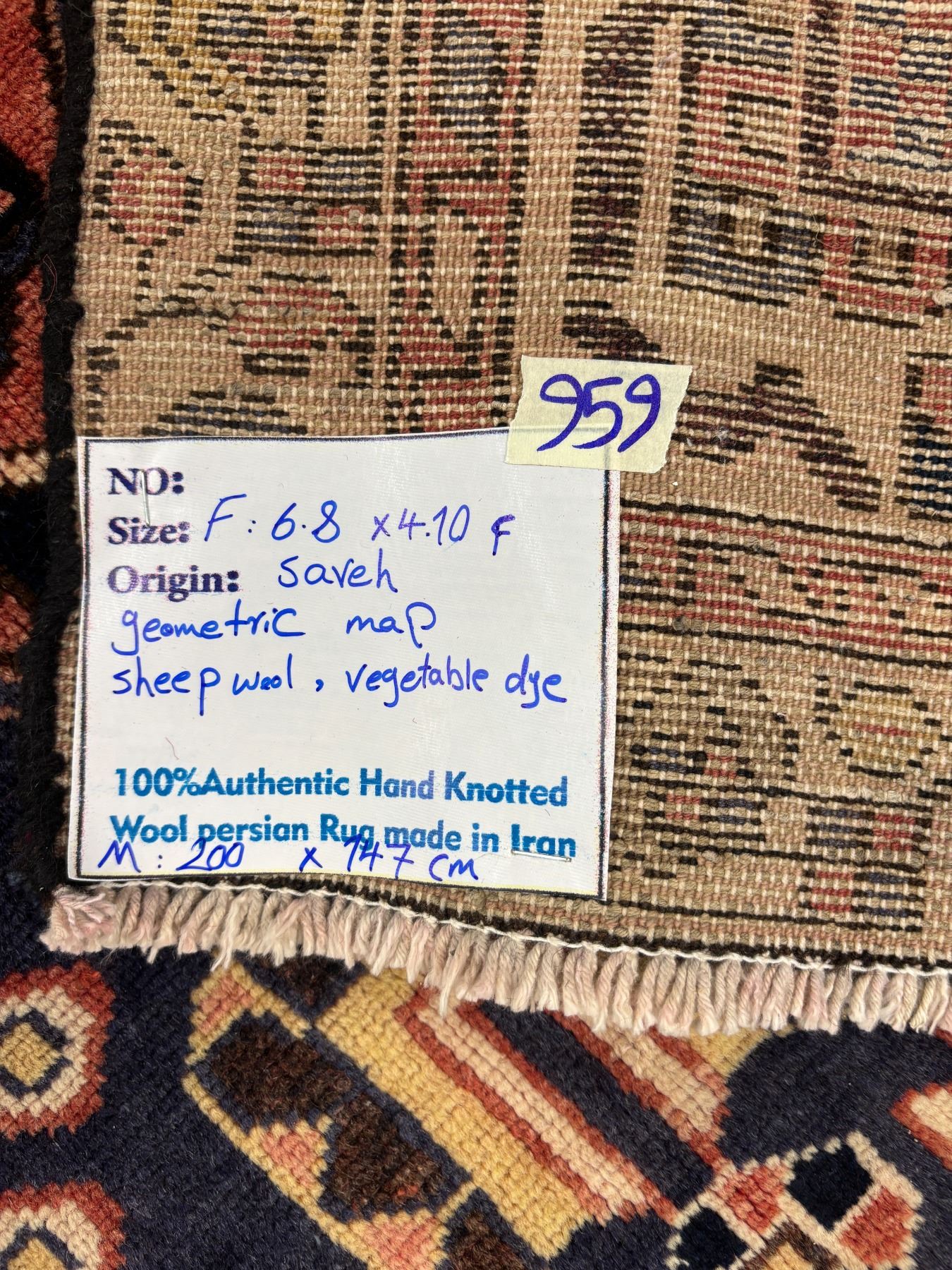 Authentic Handmade Persian Rug - Saveh - Made in Iran - Dimensions: 6.8' × 4.10' ft - No: 759