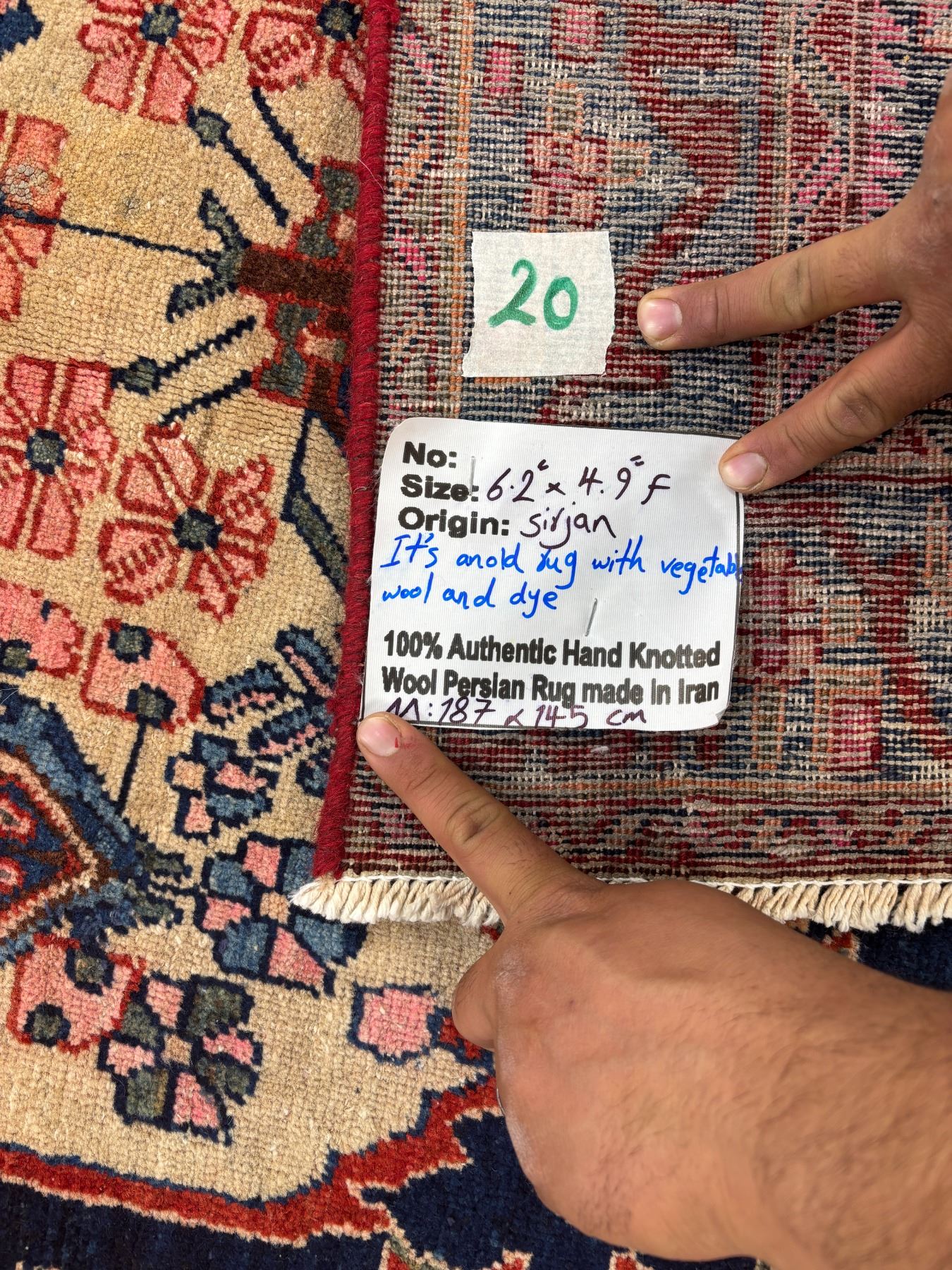 Authentic Handmade Persian Rug - Sirjan - Made in Iran - Dimensions: 6.2' × 4.9 ' ft No: 762