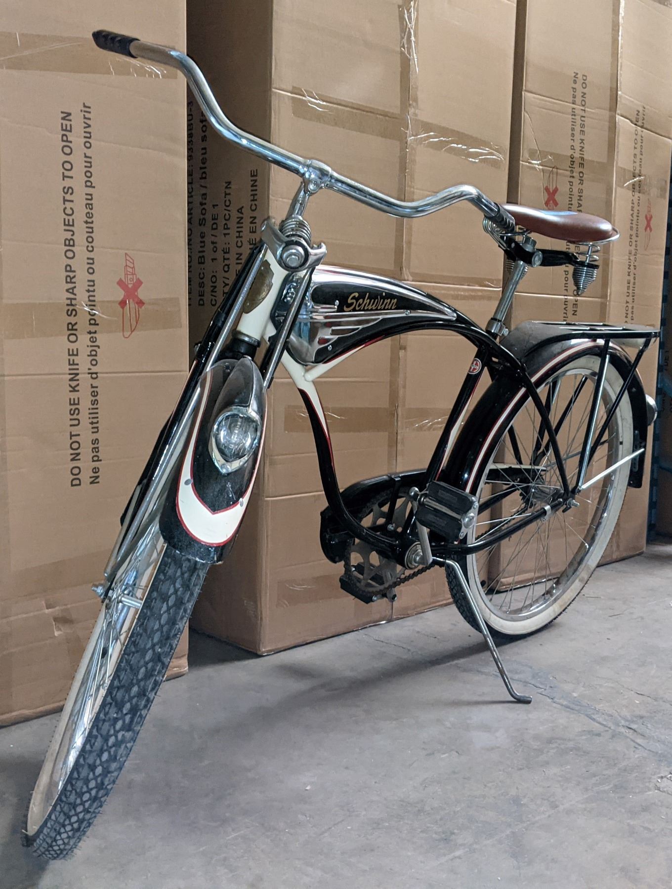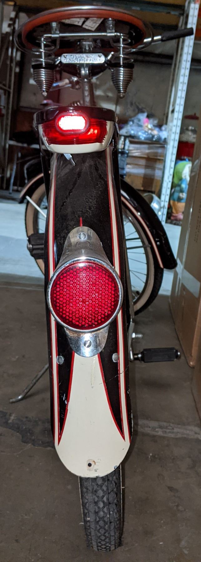 Chrome tank with swinger front end. Restored light-up fenders and leather springer seat. Cost over $2000 to restore this amazing piece of history.