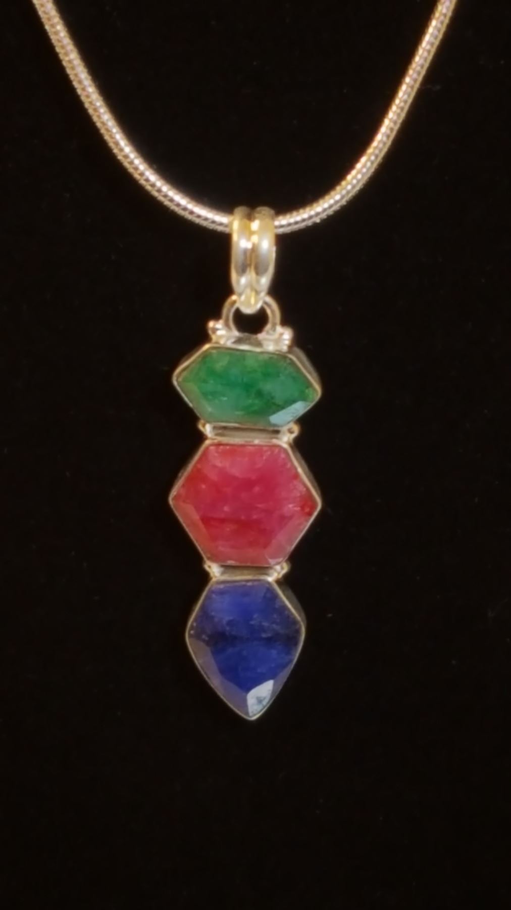 Awesome 8.50 cttw Ruby,Emearald & Sapphire Pendant.
