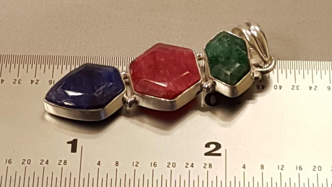 Awesome 8.50 cttw Ruby,Emearald & Sapphire Pendant. Mounted In .925 Sterlins Silver. Includes 20" 2 mm Chain. Choice Piece. 84 cttw